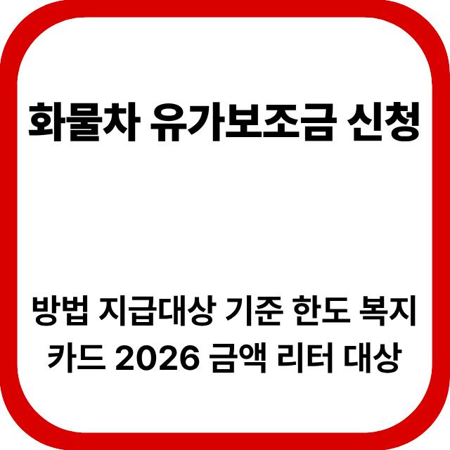 화물차 유가보조금 신청방법과 2026년 지급대상 기준, 리터당 지원 금액, 지급 한도, 복지카드 사용 방법까지 실제 신청 전에 꼭 알아야 할 정보를 정리했습니다.