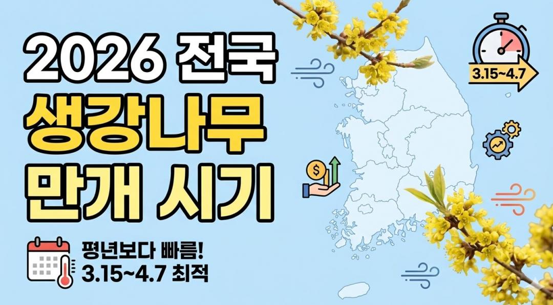 산수유보다 먼저 노란 꽃망울을 터뜨리는 생강나무꽃 구경을 계획 중이시라면 산림청의 만개 예측 지도를 참고해 보세요! 2026년은 따뜻한 날씨 덕분에 예년보다 일찍 봄의 전령사를 만날 수 있습니다.