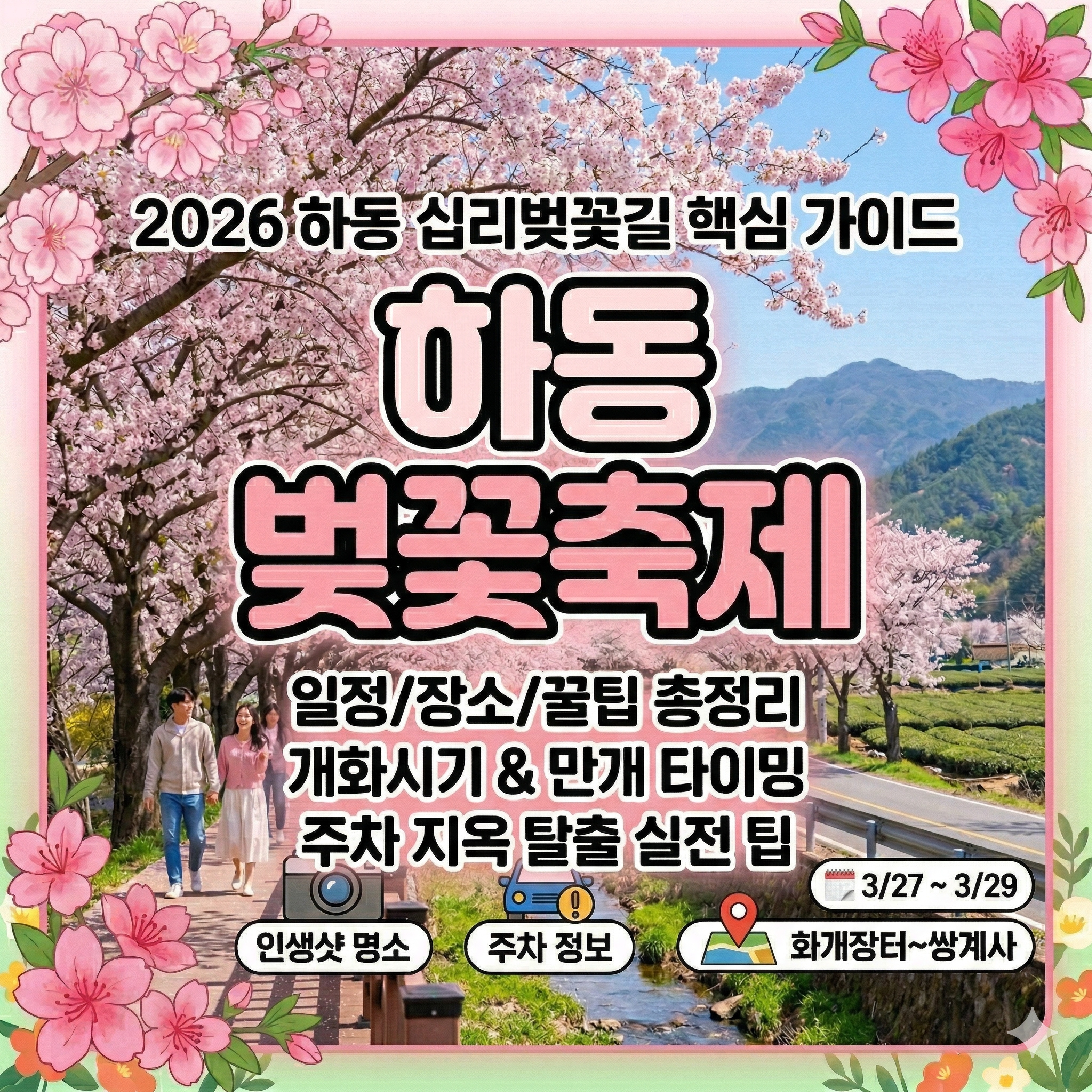올해 하동 벚꽃여행은 예년보다 더 빠르게 움직여야 할 이유가 분명합니다. 화개장터 벚꽃축제 일정, 십리벚꽃길 개화 흐름, 주차 변수까지 한 번에 정리했으니 지금 확인해 두면 훨씬 여유롭게 봄을 만날 수 있어요. 특히 축제장과 벚꽃길 동선을 제대로 알면, 사람들이 몰리는 시간대에도 만족도 높은 여행이 가능합니다 하동 벚꽃 실시간 위치 하동 벚꽃축제 핵심 일정 2026 하동 화개장터 벚꽃축제는 3월 27일부터 3월 29일까지 3일간 화개면 그린나래공원과 십리벚꽃길 일원에서 열립니다. 개막식과 축하공연은 27일 오후 6시에 시작되며, 28일에는 벚꽃노래자랑과 DJ 뮤직 페스티벌, 29일에는 청소년 댄스 경연대회가 예정되어 있어요. 지난해 산불 여파로 축제가 열리지 못했던 아쉬움이 있었던 만큼, 올해는 체감상 더 반갑고 더 풍성하게 느껴질 가능성이 큽니다. 여행 관점에서 보면 이번 하동 벚꽃축제는 단순히 행사만 보는 일정이 아닙니다. 화개장터의 정취, 섬진강변 풍경, 쌍계사로 이어지는 벚꽃길, 그리고 차 문화가 함께 엮여 있어 하루짜리 코스보다 반나절 산책형 일정으로 접근하는 편이 훨씬 만족스럽습니다. 저라면 축제 프로그램은 저녁에, 벚꽃길은 이른 아침에 나눠 즐기는 방식을 추천하고 싶습니다. 하동 실시간 개화정보 십리벚꽃길이 특별한 이유 하동 십리벚꽃길은 화개장터에서 쌍계사까지 이어지는 약 6km 구간으로, 봄이 오면 도로 양쪽 벚나무가 아치처럼 맞물리며 장관을 만듭니다. 이 길은 ‘혼례길’이라는 별칭으로도 유명한데, 연인이 손잡고 걸으면 오래 좋은 인연을 이어간다는 이야기가 전해집니다. 이런 서사가 더해져서인지 단순히 예쁜 길이 아니라 감정이 머무는 길처럼 느껴지는 곳입니다. 풍경의 밀도도 상당합니다. 벚꽃만 있는 것이 아니라 화개천 물길, 주변 산세, 녹차밭의 초록빛이 함께 어우러져 사진보다 실제가 더 아름답다는 말이 자주 나오는 이유를 납득하게 됩니다. 특히 꽃이 절정에 가까워질수록 연분홍 지붕 아래를 걷는 듯한 기분이 들고, 낙화가 시작되면 바람에 흩날리는 꽃잎이 분위기를 완전히 바꿔 놓습니다. 이 길은 드라이브 명소이기도 하지만, 진짜 매력은 천천히 걸을 때 더 또렷하게 드러납니다. 하동 벚꽃 실시간 위치 개화시기와 방문 타이밍 여러 자료를 종합하면 2026년 하동 십리벚꽃길은 3월 말 개화 시작, 3월 27일 전후 절정 초입 가능성, 3월 27일에서 31일 사이 가장 주목할 만한 시기로 정리할 수 있습니다. 일부 자료에서는 4월 초 만개 흐름도 언급하고 있어, 실제 방문 전에는 하동군 실시간 벚꽃 개화 정보 확인이 사실상 필수입니다. 봄꽃은 며칠 차이로 인상이 완전히 달라지기 때문이죠. 개인적으로는 두 가지 방식이 좋습니다. 축제의 흥겨움이 목적이라면 3월 27일부터 29일 사이 방문, 보다 차분한 산책과 사진 촬영이 목적이라면 축제 직후 또는 4월 초 흐름을 노리는 방식입니다. 특히 사람 많은 축제를 여러 번 다녀본 경험상, 새벽 시간대의 십리벚꽃길은 같은 장소라도 전혀 다른 여행지처럼 느껴질 정도로 분위기가 다릅니다. 하동 실시간 개화정보 주차와 교통은 이렇게 준비 이번 시즌의 가장 큰 변수는 주차입니다. 쌍계사 국립공원 주차장이 3월 20일부터 유료화로 전환되었고, 축제 기간 교통 혼잡 우려도 커졌습니다. 여기에 28일과 29일에는 차 없는 거리와 일부 일방통행 운영이 예정되어 있어, 예전처럼 즉흥적으로 차를 끌고 들어가면 생각보다 오래 발이 묶일 수 있습니다. 하동 벚꽃축제를 편하게 즐기려면 아예 교통 전략을 먼저 세우는 것이 좋습니다. 실전 팁은 명확합니다. 오전 9시 이전 도착, 화개장터 공영주차장 또는 임시주차장 우선 확인, 이후 도보 이동 중심으로 계획하기입니다. 쌍계사 방향에서 내려오는 코스도 괜찮지만, 주말에는 대기 시간이 길어질 가능성이 큽니다. 도로변 불법주차 단속과 혼잡도까지 고려하면, ‘걷는 여행’으로 생각을 바꾸는 순간 오히려 훨씬 편안해집니다. 한눈에 보는 여행 정리표 아래 표만 저장해 두어도 일정 짜기가 훨씬 쉬워집니다. 항목 내용 축제 기간 2026.03.27 ~ 2026.03.29 주요 장소 화개면 그린나래공원, 화개장터, 십리벚꽃길, 쌍계사 일원 추천 방문 시점 축제 체험은 3월 27~29일, 산책 중심은 3월 말~4월 초 교통 팁 오전 일찍 도착, 도보 이동 중심, 실시간 교통 상황 확인 체크 포인트 실시간 개화정보, 주차장 운영 여부, 차 없는 거리 일정 놓치면 아쉬운 즐길거리 하동 화개장터 벚꽃축제의 매력은 꽃만 보는 데서 끝나지 않습니다. 벚꽃 웨딩로드 포토존, 거리 공연, 플리마켓, 차 시음 행사, 지역 먹거리까지 더해져 체류 시간이 자연스럽게 길어집니다. 은어회, 재첩국, 참게탕처럼 섬진강권 먹거리를 곁들이면 여행의 기억이 훨씬 진해집니다. 벚꽃은 눈으로 즐기고, 지역의 맛과 분위기는 몸으로 기억하는 여행이 되는 셈이죠. 사진을 남기고 싶다면 벚꽃 터널 중앙, 하천 옆 산책로, 화개장터 초입을 눈여겨보세요. 영상 촬영을 한다면 이른 오전의 부드러운 빛이 가장 유리합니다. 멀티미디어 기록용으로는 벚꽃길 전경 사진, 화개천 수변 영상, 저녁 공연 컷을 함께 담아두