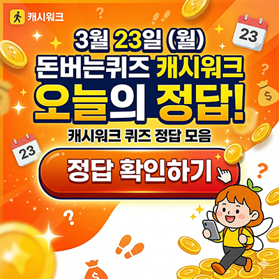 >> 3월23일 돈버는퀴즈 캐시워크 정답 확인하기 <<