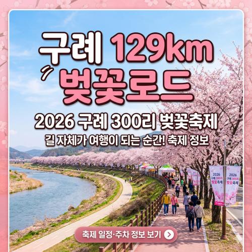 올봄 벚꽃 여행을 아직 정하지 못했다면, 129km 벚꽃로드가 열리는 구례를 먼저 체크해보세요. 유명 벚꽃 명소와는 결이 다른, 길 자체가 여행이 되는 순간을 만날 수 있습니다. 게다가 이번 축제는 꽃만 보는 행사가 아닙니다. 공연, 야행, 스탬프 투어, 멍때리기, 사진 콘테스트까지 더해져 하루가 금방 지나갈 만큼 촘촘하게 채워졌어요. 일정이 가까워질수록 숙소와 동선은 더 빠르게 마감됩니다. 아래 버튼으로 공식 안내를 먼저 확인해 두면, 이번 봄이 훨씬 가볍고 선명해질 거예요  구례 벚꽃 일정·주차 보기 구례 벚꽃축제가 특별한 이유 2026 구례 300리 벚꽃축제는 3월 28일부터 30일까지 서시천체육공원과 문척면 행복센터 일원에서 열립니다. 핵심 키워드는 단연 ‘벚꽃로드 129km’예요. 단순히 포토존 몇 군데를 도는 축제가 아니라, 섬진강과 마을길을 따라 이어지는 벚꽃 풍경 전체를 여행의 무대로 삼는다는 점이 인상적입니다. 개인적으로 구례의 매력은 화려함보다 여백에 있다고 느껴요. 큰 도시형 축제처럼 북적이기만 하는 게 아니라, 걷고 쉬고 바라보는 시간이 살아 있습니다. 그래서 가족 여행은 물론이고, 혼자 떠나는 봄 여행지로도 만족도가 높습니다. 꽃길이 길수록 사진보다 기억이 오래 남는다는 말, 구례에선 꽤 실감하게 됩니다. 구례 벚꽃 행사장 위치보기 놓치면 아쉬운 핵심 프로그램 첫날 저녁 서시천체육공원에서는 개막식과 함께 황가람, 나비, 전자현악 공연이 예정되어 있어 분위기를 단숨에 끌어올립니다. 벚꽃 아래에서 라이브 공연을 듣는 경험은 화면으로 보는 봄과는 확실히 다르죠. 낮에는 풍경이 화사하고, 밤에는 조명이 더해져 감성이 깊어집니다. 축제의 진짜 재미는 참여형 프로그램에 있습니다. 문화해설사와 함께하는 벚꽃길 걷기 스탬프 투어, 소원등을 들고 걷는 벚꽃야행, 심용환 박사의 역사 강좌, 그리고 벚꽃 멍때리기까지 준비돼 있어요. 뭔가를 계속 소비하는 여행보다, 구례라는 장소와 천천히 연결되는 여행에 가깝습니다. 바쁜 일상에 지친 분일수록 더 마음에 들 수 있어요. 추억을 남기는 장치도 알찹니다. 벚꽃 네 컷 부스, 사진 콘테스트, 포토존, 벚꽃 피아노, 캠프닉 요소까지 더해져 사진과 영상으로 남기기 좋습니다. 멀티미디어 감성을 챙기고 싶다면 낮 풍경은 연하교와 서시교 구간, 저녁 장면은 공연 시간대와 야행 코스를 중심으로 담아보세요. 짧은 릴스나 브이로그 소재로도 아주 좋습니다. 구례 벚꽃 명당 코스 누구와 가도 좋은 추천 동선 아이와 함께라면 서시천체육공원 중심 동선이 안정적입니다. 다른 그림 찾기, 스탬프 투어, 체험 부스, 가족형 놀이터 요소가 있어 아이가 지루해할 틈이 적어요. 중간중간 벚꽃 푸드와 디저트를 즐기며 쉬기 좋고, 이동 거리도 비교적 짧게 조절할 수 있어 부모 입장에서 편합니다. 커플이라면 벚꽃야행과 개막 공연 조합을 추천합니다. 해가 기울 무렵 꽃길을 걷고, 밤에는 공연을 즐기면 하루 코스가 자연스럽게 완성돼요. 사진을 남길 땐 무리하게 많은 장소를 찍기보다, 한두 구간에서 오래 머무는 편이 오히려 분위기가 살아납니다. 구례의 매력은 ‘많이 보는 것’보다 ‘깊게 머무는 것’에 있으니까요. 혼자 가는 여행자라면 멍때리기 행사와 역사 인문학 강의, 버스킹 조합이 좋습니다. 혼자 여행할 때 가장 중요한 건 어색하지 않은 리듬인데, 구례는 그 리듬이 꽤 부드럽습니다. 걷다가 멈추고, 듣다가 생각하고, 사진 몇 장 남기고 다시 이동하는 흐름이 자연스러워요. 혼행이 쓸쓸하기보다 충전처럼 느껴질 가능성이 큰 여행지입니다. 구례벚꽃축제 교통정보 일정과 정보 한눈에 보기 방문 전 핵심만 빠르게 확인할 수 있도록 주요 정보를 표로 정리했습니다. 실제 운영 시간과 세부 배치는 현장 상황에 따라 달라질 수 있으니 출발 전 공식 페이지를 한 번 더 확인하는 것이 좋습니다. 항목 내용 축제 기간 2026년 3월 28일(토) ~ 3월 30일(월) 주요 장소 서시천체육공원 일원, 문척면 행복센터 일원 대표 포인트 전국 최장 129km 벚꽃길, 개막 공연, 스탬프 투어, 벚꽃야행, 멍때리기 추천 체험 벚꽃 네 컷, 사진 콘테스트, 버스킹, 역사 강좌, 전통놀이 체험 방문 팁 주말 혼잡 예상, 편한 신발과 얇은 겉옷 준비, 교통안내 사전 확인 권장 공식 일정표를 보면 3월 28일에는 개막식과 야행, 29일에는 역사 강좌와 멍때리기, 문척면 무대 프로그램이 특히 눈에 띕니다. 30일에는 플로깅과 버스킹 등 비교적 여유 있게 즐기기 좋은 구성이 보입니다. 북적이는 첫날이 좋다면 28일, 차분하게 즐기고 싶다면 29일이나 30일이 더 잘 맞을 수 있어요. 함께 보면 좋은 연계 여행 팁 구례는 한 가지 꽃만 보고 돌아오기 아까운 지역입니다. 같은 시기 지역 전체가 봄꽃 분위기로 이어지고, 4월 초까지는 화엄매 사진 콘테스트 같은 연계 요소도 있어 여행의 여운을 늘리기 좋습니다. 벚꽃만 찍고 끝내기보다, 구례의 강변 풍경과 마을 감성, 사찰 주변의 고요한 공기까지 함께 담아보면 만족도가 더 높아져요. 교통은 자차가 편리하지만, 축제 기간에는 주차와 이동 혼잡이 생길 수 있습니다. 그래서 한 곳에 차를 두고 걷는 시간을 충분