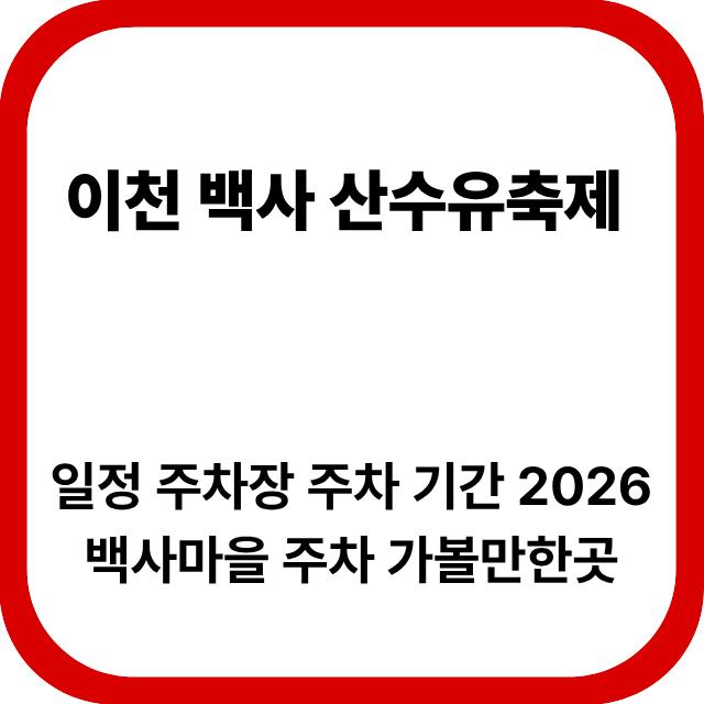 2026년 이천 백사 산수유축제 일정, 주차장 위치, 주차 기간, 백사마을 방문 팁까지 한 번에 정리했습니다. 주차 혼잡 피하는 방법과 꼭 가봐야 할 코스까지 실전 정보 제공.