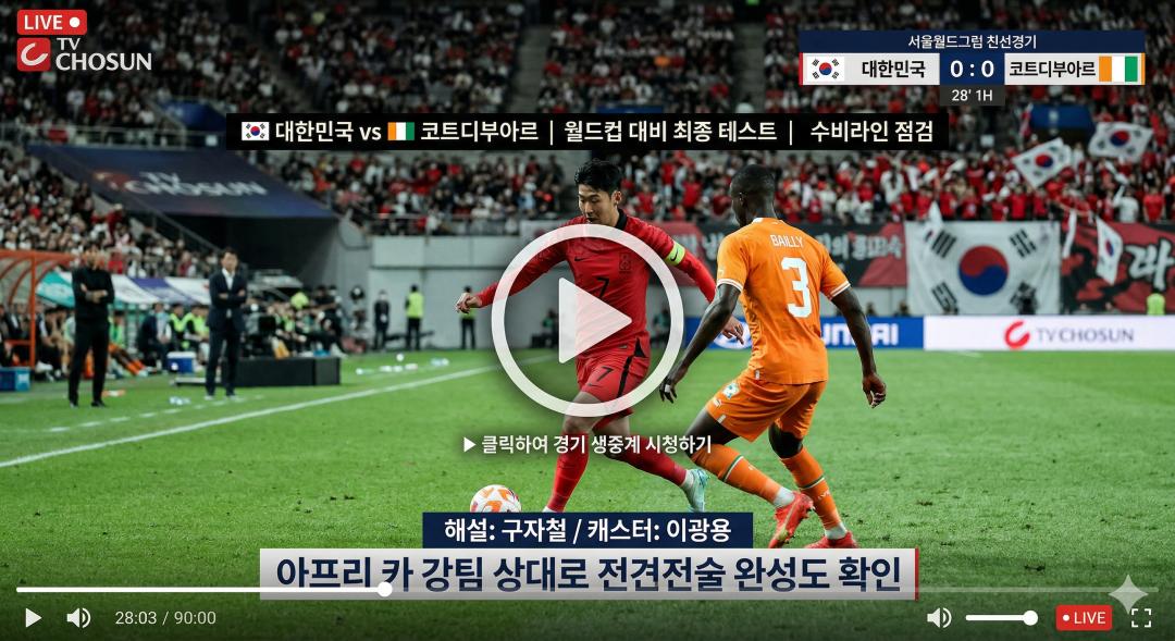 이번 주말, 그냥 넘기면 후회할 경기입니다. 대한민국 vs 코트디부아르, 월드컵을 앞둔 마지막 실전 점검이 시작됩니다. 단순한 친선경기가 아니라 전술·선수·전략 모두가 시험대에 오르는 순간, 지금 바로 확인해보세요. 실시간 중계 보러가기 경기 일정 및 중계 정보 대한민국 축구대표팀은 2026 북중미 월드컵을 앞두고 중요한 평가전에 나섭니다. 이번 경기는 단순한 친선전이 아닌, 실전과 동일한 환경에서 전술을 점검하는 핵심 무대입니다. 특히 유럽 원정이라는 점에서 체력과 적응력까지 동시에 테스트됩니다. 항목 내용 경기 대한민국 vs 코트디부아르 일시 2026년 3월 28일 밤 10시 30분 장소 영국 밀턴케인스 스타디움 MK 중계 TV조선 생중계 실시간 중계 보러가기 월드컵 대비 핵심 테스트 이번 경기의 가장 큰 의미는 ‘월드컵 리허설’입니다. 특히 하이드레이션 브레이크 도입으로 경기 흐름이 기존과 달라집니다. 전·후반 각각 22분 이후 휴식이 주어지며, 사실상 4쿼터 형태로 운영됩니다. 또한 교체 인원이 최대 8명까지 확대되며 다양한 전술 실험이 가능합니다. 이는 선수 기용 폭을 넓히고 최적 조합을 찾는 중요한 기회입니다. 실시간 중계 보러가기 전술 포인트: 윙백 전쟁 이번 경기의 핵심은 측면 싸움입니다. 코트디부아르는 디알로, 페페 등 강력한 윙어를 보유하고 있습니다. 스피드와 돌파력을 앞세운 공격은 한국 수비에 큰 부담이 될 수 있습니다. 홍명보 감독의 3-4-2-1 전술에서 윙백은 공격과 수비를 동시에 책임집니다. 만약 측면에서 밀릴 경우, 전체 전술 균형이 흔들릴 가능성이 큽니다. 실시간 중계 보러가기 1000번째 A매치 의미 이번 경기는 대한민국 축구 역사상 1000번째 A매치라는 상징성을 갖습니다. 1948년 시작된 대표팀 역사가 하나의 이정표에 도달한 순간입니다. 현재까지 542승을 기록하며 성장해온 대표팀은, 이번 경기에서 또 하나의 의미 있는 승리를 노립니다. 단순한 결과를 넘어 미래를 위한 방향성이 중요한 경기입니다. 관전 포인트 정리 이번 경기를 더욱 흥미롭게 만드는 요소들을 정리해보면 다음과 같습니다. 전술 변화, 선수 경쟁, 그리고 아프리카 팀 상대 징크스 극복까지 다양한 이야기가 담겨 있습니다. 포인트 설명 전술 변화 3백 시스템 완성도 점검 체력 관리 하이드레이션 브레이크 적용 선수 경쟁 월드컵 최종 명단 경쟁 징크스 아프리카 팀 상대 약세 극복 마무리 및 관람 팁 이번 경기는 단순한 친선전이 아닌, 월드컵 성적을 좌우할 중요한 시험 무대입니다. 전술 완성도와 선수 컨디션을 동시에 확인할 수 있는 절호의 기회입니다. 토요일 밤, 대표팀의 변화를 직접 확인하며 응원해보세요. 작은 디테일 하나가 월드컵 결과를 바꿀 수 있습니다. Q&A Q1. 이번 경기는 왜 중요한가요? 월드컵 전 마지막 실전 점검 경기로 전술과 선수 조합을 확인하는 핵심 경기입니다. Q2. 하이드레이션 브레이크란? 경기 중 수분 보충을 위해 일정 시간 휴식하는 제도로, 경기 흐름에 큰 영향을 줍니다. Q3. 코트디부아르는 강팀인가요? 아프리카 네이션스컵 우승팀으로, 피지컬과 스피드가 뛰어난 강팀입니다. Q4. 관전 포인트는 무엇인가요? 윙백 수비, 전술 변화, 교체 활용 등이 핵심 포인트입니다. Q5. 어디서 시청할 수 있나요? TV조선에서 생중계로 시청 가능합니다. 대한민국 vs 코트디부아르 A매치 실시간 중계 보러가기 안녕하세요! 오늘은 대한민국 코트디부아르 친선경기에 대해 알아보려고 해요  이번 경기는 단순한 평가전이 아니라, 2026 북중미 월드컵을 앞둔 중요한 점검 경기라 축구 팬들의 관심이 정말 뜨거운데요. 특히 아프리카 강팀을 상대로 어떤 전술과 경기력을 보여줄지가 핵심 포인트입니다. 중계 정보부터 관전 포인트까지 한 번에 보기 쉽게 정리해드릴게요!  실시간 중계 보러가기 1. 대한민국 코트디부아르 경기, 왜 중요할까?  이번 경기는 그냥 친선경기 느낌이 아니라, 말 그대로 **“월드컵 리허설”**이라고 보시면 이해가 쉬워요. 대표팀은 이 경기를 통해 전술 완성도, 선수 조합, 경기 운영까지 전반적인 점검을 진행하게 됩니다. ​  특히 이런 분들께 중요한 경기예요  국가대표 전술 변화 궁금한 분  월드컵 대비 흐름 보고 싶은 분  선수 경쟁 구도 체크하고 싶은 분 ​ ​ 3월 28일 월드컵 A매치 축구 국가대표팀 친선경기 대한민국 vs 코트디부아르 경기 일정, 시간, 명단, 실시간 생 중계 보는 법, 전술 1) 월드컵 대비 실전 테스트 경기  ​ 평소 친선경기는 가볍게 보는 경우 많죠? 하지만 이번 경기는 분위기가 완전히 달라요. ​  이번 경기 특징 정리 전술 실험 + 선수 경쟁 동시에 진행 사실상 월드컵 전 마지막 점검 감독 입장에서 ‘최종 테스트’ 성격 ​ 예를 들어, 예전에는 주전 위주로 안정적인 경기 운영을 했다면 이번에는 새로운 조합이나 포지션 변화도 적극적으로 시도될 가능성이 높아요. ​  꿀팁 경기 볼 때 “누가 잘하냐”보다  **“어떤 조합이 통하냐”**를 보면 훨씬 재밌어요! ​ 실시간 중계 보러가기 ​ 2) 아프리카 팀 상대 약점 극복이 핵심  ​ 한국 대표팀이 아프리카 팀 만나면  “왜 이렇게 어렵지?” 느끼신 적 있죠? 이유는