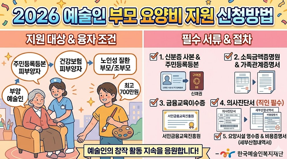 2026 예술인 부모 요양비 신청방법, 자격, 서류 완벽정리