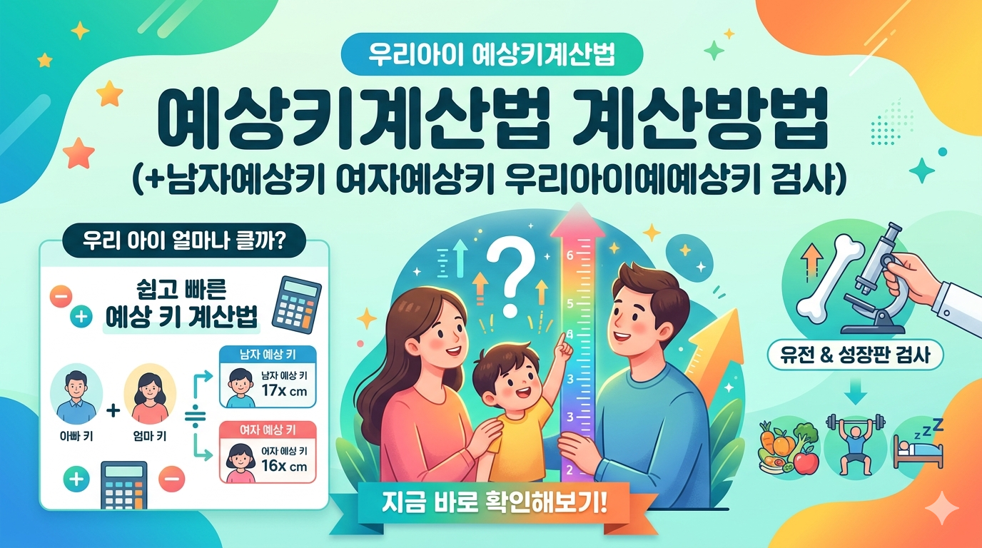 2026년 최신 데이터 기반 우리 아이 예상키 계산법과 남자 및 여자 예상키 산출 공식을 상세히 설명합니다. 유전적 요인부터 후천적 성장 관리법까지, 정확한 예상키 계산방법과 성장 검사 시기를 지금 바로 확인하세요.