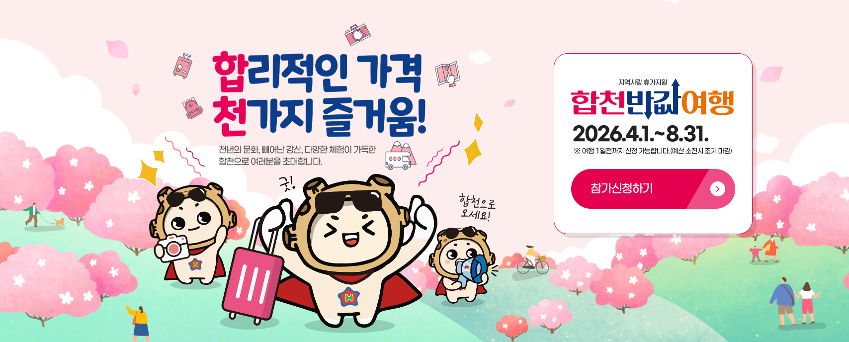 올봄 여행비가 부담돼 망설였다면, 합천반값여행은 그냥 지나치기 아까운 기회입니다. 지정 관광지 2곳 방문과 제로페이 소비 2건만 제대로 챙기면 사용 경비의 50%, 청년은 70%까지 돌려받을 수 있어 합천 여행의 체감 비용이 확 낮아집니다. 놓치기 전에 신청 조건과 정산 포인트를 먼저 확인해 보세요 반값여행 신청 바로가기 합천반값여행 핵심부터 정리 합천반값여행은 합천 외 지역 거주자가 사전에 홈페이지로 여행 신청을 하고, 승인 후 모바일 합천반값여행상품권을 구매해 실제 여행 경비로 사용한 뒤 일정 조건을 충족하면 환급받는 방식의 지원 사업입니다. 단순 할인 이트가 아니라 여행 후 정산까지 완료해야 혜택이 확정되므로, 출발 전 준비가 절반이라고 봐도 됩니다. 지원 유형은 가족형, 팀형, 청년 1인, 개인 1인으로 나뉘며 조건도 조금씩 다릅니다. 가족형은 최대 50만원, 팀은 최대 20만원, 개인은 최대 10만원, 청년은 최대 14만원까지 환급 가능해 여행 스타일에 따라 체감 혜택이 꽤 달라집니다. 특히 2026년 4월 1일 기준 만 19세부터 34세까지라면 청년형이 가장 유리합니다. 반값여행 신청 바로가기 누가 신청 가능하고 누가 제외될까 신청 대상은 합천을 여행하고 싶은 타지역 거주자입니다. 당일치기든 숙박이든 가능하지만, 반드시 여행 1일 전까지 홈페이지에서 사전 신청 후 승인을 받아야 합니다. 여행 다녀온 뒤 뒤늦게 신청하는 방식은 인정되지 않으니 이 부분은 꼭 기억해야 합니다. 다만 합천, 창녕, 의령, 산청, 거창, 고령, 성주 거주자는 선정 제외 지역으로 안내되어 있습니다. 또 신청 대표자와 구성원 모두 연 1회만 가능하므로, 가족으로 신청할지 청년으로 따로 신청할지 먼저 계산해 보는 것이 좋습니다. 가족 안에 청년이 있어도 가족형과 청년형 중복 지원은 되지 않기 때문에 신청 방식 선택이 꽤 중요합니다. 반값여행 신청 바로가기 신청부터 환급까지 흐름 한눈에 보기 절차는 생각보다 단순합니다. 먼저 합천반값여행 홈페이지에서 여행 신청을 하고, 승인 문자를 받은 뒤 제로페이 앱에서 합천반값여행상품권을 구매합니다. 그다음 합천에서 지정 관광지 2곳 이상을 방문하고, 관내 제로페이 가맹점 2곳 이상에서 상품권으로 결제한 뒤 여행 종료 다음날부터 10일 이내 정산 신청을 하면 됩니다. 정산 승인 후에는 신청자 휴대폰 번호로 모바일 상품권 PIN 번호가 발송됩니다. 이 PIN을 제로페이 앱의 선물 또는 쿠폰 등록 메뉴에 입력하면 환급 상품권이 등록됩니다. 저는 이런 지원 사업을 볼 때 신청보다 정산 단계에서 많이 놓친다고 느끼는데, 합천반값여행도 결국 영수증과 사진 관리가 성패를 좌우합니다. 반값여행 신청 바로가기 지원 내용과 환급 기준 표로 확인 아래 표만 이해해도 어떤 유형으로 신청해야 할지 감이 빨리 잡힙니다. 여행 인원과 소비 계획을 보고 가장 유리한 유형을 선택해 보세요. 신청유형 최대 지원금 적용 기준 가족형 최대 50만원 동일 주거지 가족, 1인당 최대 10만원, 최대 5인 팀 2인 이상 최대 20만원 총 40만원 소비 시 50% 적용 청년 1인 최대 14만원 만 19~34세, 70% 적용 개인 1인 최대 10만원 총 20만원 소비 시 50% 적용 최소 소비액은 5만원 이상이며, 정산 금액은 5천원 단위로 지급됩니다. 예를 들어 개인 여행자가 20만원을 알맞게 사용했다면 최대 10만원 환급이 가능하고, 청년이라면 같은 여행에서도 환급 체감이 더 커집니다. 예산 소진 시 조기 마감될 수 있으니 일정이 정해졌다면 늦추지 않는 편이 좋습니다. 인증 조건에서 가장 많이 실수하는 부분 첫째, 관광지는 반드시 합천군 지정관광지 2곳 이상이어야 합니다. 유료 관광지로는 합천영상테마파크, 대장경테마파크, 멍스테이, 오도산 자연휴양림이 있고, 무료 관광지로는 해인사, 황매산, 함벽루, 정양늪생태공원, 합천운석충돌구, 합천박물관 등이 포함됩니다. 유료와 무료를 섞어도 되니 동선에 맞게 구성하면 됩니다. 둘째, 사진에는 신청 대표자와 구성원의 얼굴이 모두 나와야 합니다. 셀카 한 장 대충 찍고 끝내면 나중에 증빙이 애매해질 수 있어요. 배경이 관광지임이 드러나게 찍고, 인원이 모두 보이도록 남겨 두는 것이 안전합니다. 셋째, 소비 인증은 반드시 신청 대표자 본인 명의 휴대폰으로 사용한 합천반값여행상품권 내역만 인정됩니다. 타인 명의 제로페이 영수증, 개인카드 사용분, 현금 결제분은 대부분 인정되지 않습니다. 숙박만 예외적으로 사전예약 선결제에 한해 카드영수증 또는 현금영수증과 숙박이용확인서를 함께 제출할 수 있습니다. 여행 코스 짤 때 함께 보면 좋은 포인트 합천반값여행은 단순히 환급만 보는 것보다 코스를 잘 짜면 만족도가 훨씬 높습니다. 예를 들어 봄철이라면 황매산과 해인사를 묶고, 식사와 카페 이용을 제로페이 가맹점 위주로 배치하면 인증과 소비를 한 번에 해결할 수 있습니다. 아이와 함께라면 합천영상테마파크나 대장경테마파크를 넣는 방식도 좋습니다. 또 환급금은 현장 가맹점뿐 아니라 e경남몰과 수려한합천 온라인몰에서도 사용할 수 있어 여행 뒤에도 활용도가 있습니다. 여행비를 돌려받고 끝이 아니라 지역 상품을 다시 구매