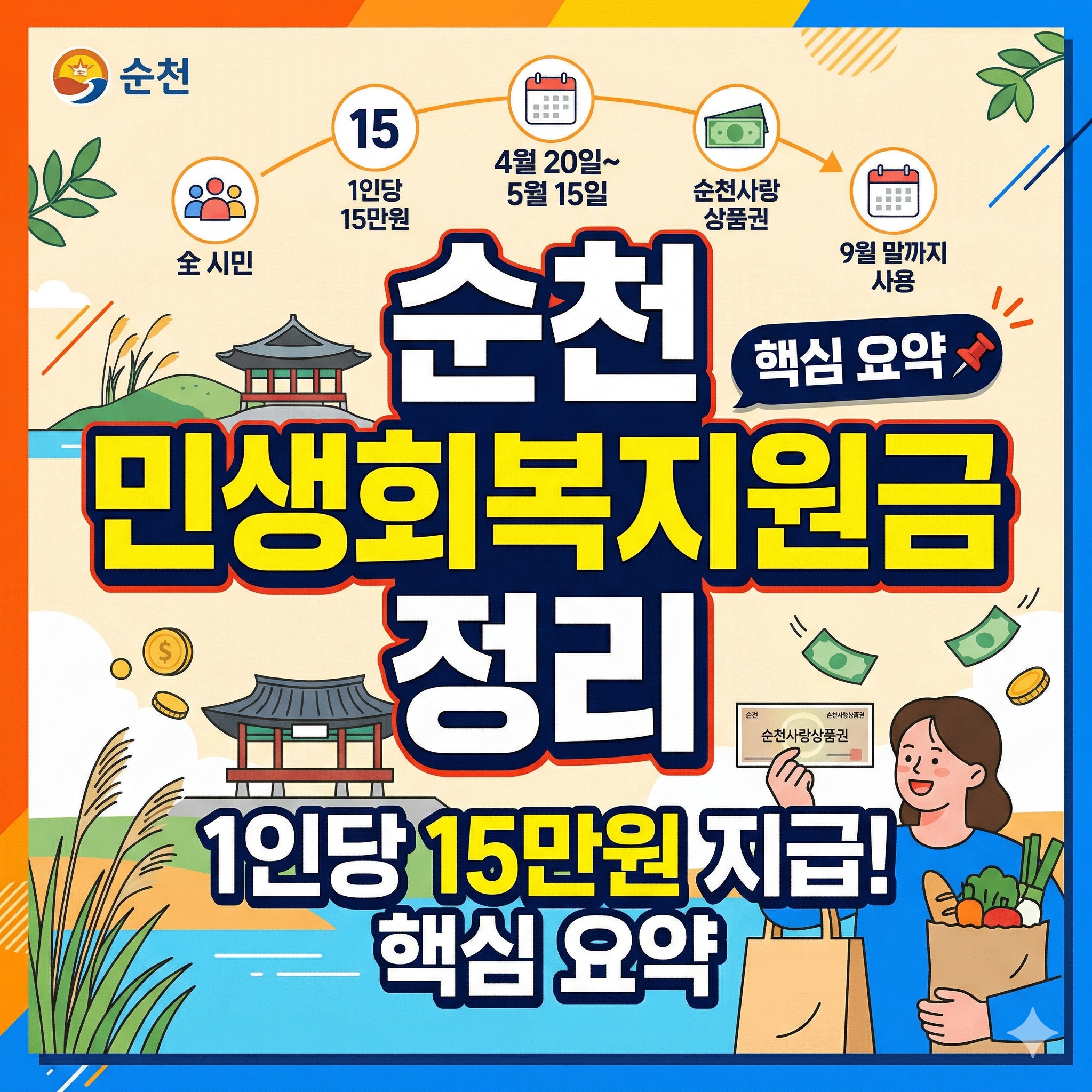 순천시 민생회복지원금 내용이 헷갈리시는 분들이 많을 것 같아 신청 대상, 신청 기간, 지급 방식, 사용 기한까지 한 번에 보기 쉽게 정리해보았습니다.