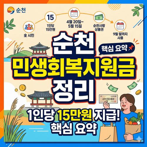 전남 순천 민생지원금 3차 신청 방법, 조건, 대상, 15만원 민생회복지원금, 민생안정지원금 2026