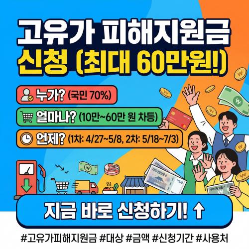 고유가 피해지원금 신청 방법, 대상, 기준, 지급일, 신청일, 미성년자, 신생아, 사용처 안녕하세요! 오늘은 고유가 피해지원금에 대해 알아보려고 해요. 요즘은 주유비만 오른 게 아니라 장보는 비용, 외식비, 생활비 전반이 다 부담스럽게 느껴지죠. 그래서 이런 지원금은 “나랑 관련 있나?” 정도로만 보고 넘기기보다, 대상·금액·신청기간·사용처까지 정확히 챙겨두는 게 정말 중요해요. 이번 글에서는 신청 직전에 급하게 찾지 않도록, 필요한 부분만 쏙쏙 담아봤어요.  고유가 피해지원금 신청하기 1. 고유가 피해지원금, 누가 얼마나 받을까?  출처 입력 고유가 피해지원금은 말 그대로 고유가·고물가로 커진 생활비 부담을 덜어주기 위한 지원금이에요. 이번 지원은 **국민 70%**를 대상으로 하고, 모두 같은 금액이 아니라 소득계층과 거주 지역에 따라 차등 지급되는 방식이에요. 그래서 가장 먼저 확인해야 할 건 딱 두 가지예요.  나는 어떤 대상에 해당하는지  내 주소지가 어느 지역에 포함되는지 이 두 가지만 알면 예상 수령액이 꽤 정확하게 잡혀요. AI 활용 설정 고유가 피해지원금 신청 방법, 대상, 기준, 지급일, 신청일, 미성년자, 신생아, 사용처 1) 지원금 금액 한눈에 보기 아래 표처럼 보면 훨씬 이해가 쉬워요. 구분 수도권 비수도권 인구감소 우대지원지역 인구감소 특별지원지역 기초생활수급자 55만 원 60만 원 60만 원 60만 원 차상위계층·한부모가족 45만 원 50만 원 50만 원 50만 원 소득 하위 70% 일반 국민 10만 원 15만 원 20만 원 25만 원 딱 정리하면 이래요. 기초생활수급자: 55만 원 차상위계층·한부모가족: 45만 원 비수도권·인구감소지역 거주 취약계층: 1인당 5만 원 추가 일반 국민 70%: 지역별로 10만~25만 원 차등 지급 개인적으로 이런 지원금은 “얼마 안 되겠지” 하고 넘기기 쉬운데, 가족 단위로 보면 체감이 꽤 커요. 특히 취약계층이나 지방 거주자는 추가 지원이 붙기 때문에 꼭 본인 기준으로 다시 계산해보는 게 좋아요. 한 사람 기준으로 보면 10만 원이 작아 보여도, 막상 식비나 생필품 결제에 쓰기 시작하면 생각보다 든든하게 느껴질 수 있거든요.  지금 바로 신청하기 AI 활용 설정 고유가 피해지원금 신청 방법, 대상, 기준, 지급일, 신청일, 미성년자, 신생아, 사용처 2) 인구감소지역이면 금액이 더 올라가요  이번 지원금에서 꽤 중요한 포인트가 바로 인구감소지역 추가 지원이에요. 그냥 “지방이면 다 같은 금액이겠지”라고 생각하기 쉬운데, 실제로는 우대지원지역과 특별지원지역으로 나뉘어요. 그래서 같은 비수도권이라도 어디에 주소를 두고 있느냐에 따라 지급액이 달라질 수 있어요. 인구감소지역 구분 우대지원지역: 49개 특별지원지역: 40개 총 89개 지역 대표 지역 예시 우대지원지역: 가평, 연천, 강화, 옹진, 공주, 보령, 태안, 영주, 울진, 밀양 등 특별지원지역: 양구, 화천, 괴산, 단양, 부여, 서천, 고창, 무주, 완도, 청송, 남해, 하동 등 이 부분은 특히 부모님이나 지방 거주 가족분들 챙겨드릴 때 꼭 확인해보면 좋아요. 주소지만 보고 “비수도권이니까 15만 원이겠네” 하고 생각했다가, 실제로는 20만 원이나 25만 원 대상일 수도 있거든요. 이런 건 누가 따로 챙겨주지 않으면 그냥 지나치기 쉬워서, 가족 단톡방에 한 번 정리해서 보내두면 정말 유용해요.  AI 활용 설정 고유가 피해지원금 신청 방법, 대상, 기준, 지급일, 신청일, 미성년자, 신생아, 사용처 3) 신청 기준과 예외 사항도 체크해두세요 지원금은 2026년 3월 30일 기준 국내 거주자를 기준으로 판단해요. 그리고 2007년 12월 31일 이전 출생한 성인은 개인별 신청이 원칙이에요. 미성년자는 보통 세대주가 신청하지만, 예외적으로 직접 신청 가능한 경우도 있어요. 신청 기준 요약 성인: 개인별 신청 미성년자: 세대주가 신청 미성년 세대주: 성인 구성원이 없으면 직접 신청 가능 여기에 더해, 상황이 바뀐 분들은 이의신청으로 다시 판단받을 수 있어요. 이런 경우 이의신청 가능 3월 30일 이후 ~ 7월 17일 사이 출생한 신생아 같은 기간 귀국한 경우 같은 기간 새롭게 기초생활보장 급여 대상이 된 경우 이런 예외 규정은 정말 중요해요. “기준일이 지나서 안 되겠지” 하고 포기하는 경우가 많은데, 실제로는 신청 가능한 사례가 꽤 있거든요. 특히 신생아가 있는 가정은 출생신고와 함께 챙겨야 할 게 많아서 놓치기 쉬운데, 이런 지원금까지 같이 확인해두면 훨씬 좋아요.  고유가 피해지원금 신청하기 AI 활용 설정 고유가 피해지원금 신청 방법, 대상, 기준, 지급일, 신청일, 미성년자, 신생아, 사용처 2. 언제 신청하고, 어떻게 받으면 될까?  출처 입력 지원금은 대상별로 1차 / 2차로 나눠 신청을 받아요. 이 부분에서 가장 많이 헷갈리는 게 “나는 1차인지 2차인지”, 그리고 “요일제가 어떻게 적용되는지”예요. 신청 날짜만 제대로 기억해도 훨씬 수월하게 진행할 수 있어요. AI 활용 설정 고유가 피해지원금 신청 방법, 대상, 기준, 지급일, 신청일, 미성년자, 신생아, 사용처 1) 신청 기간 먼저 정리해볼게요 구분 신청 대상 기간 1차 기초생활수급자, 차상위계층, 한부모가족 4월 27일(월) ~ 5월 8일(금) 2차 일반 국민 