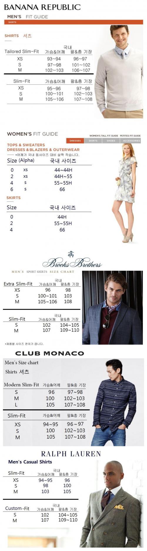 바나나와 갭, 폴로는 국내 매장과 사이즈가 동일하니 직접가셔서 입어 보시고 주문하시면 됩니다.