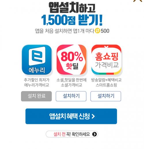 2. 이벤트 페이지 내에 있는 앱을 세 개 설치하시면, 최대 1,500포인트가 적립됩니다. (즉시 적립)
