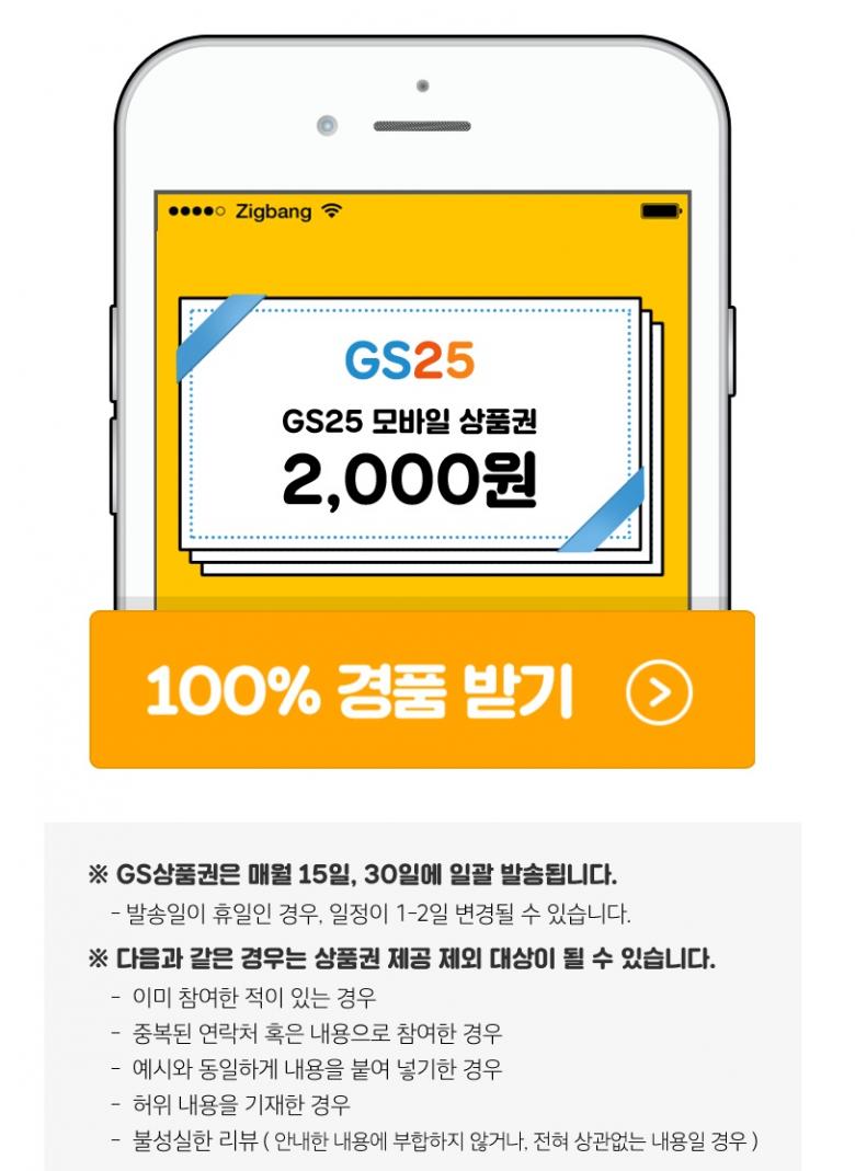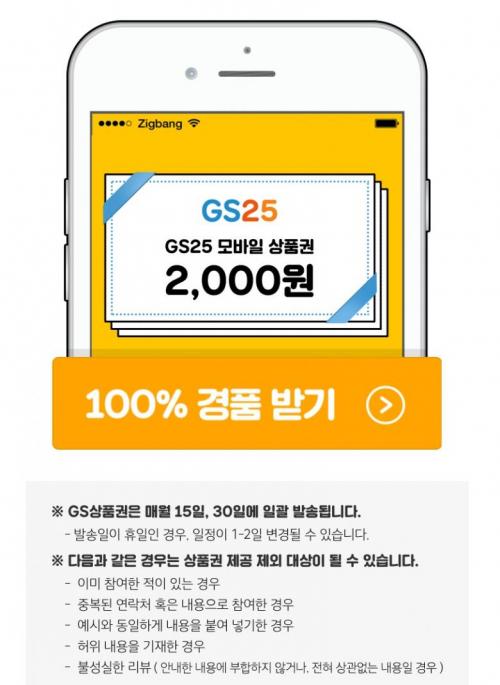 2천원 GS25편의점 상품권 100프로 증정한다네요.