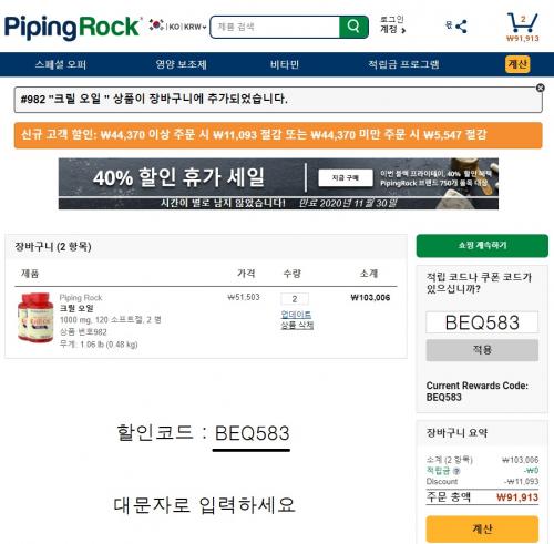 위 할인코드를 입력하시면 아래와 같이 할인됩니다.