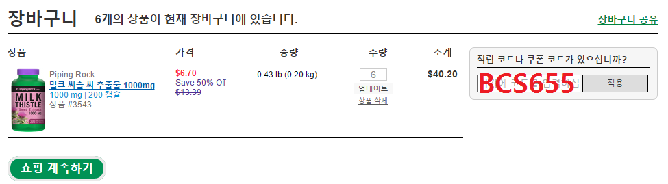 1. 구매할 영양제를 장바구니 (카트) 에 넣고