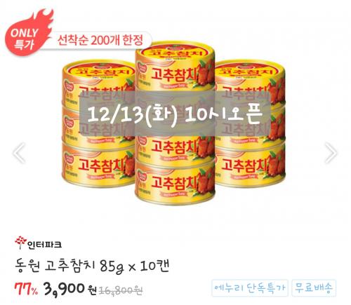 에누리 12월 3일 동원고추참치 85g x 10 3900원