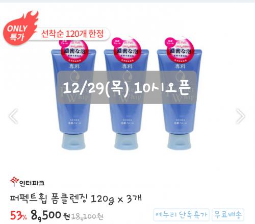 에누리앱 인터파크 퍼펙트휩 폼클렌징 3개 8,500원 > 사이렌정보