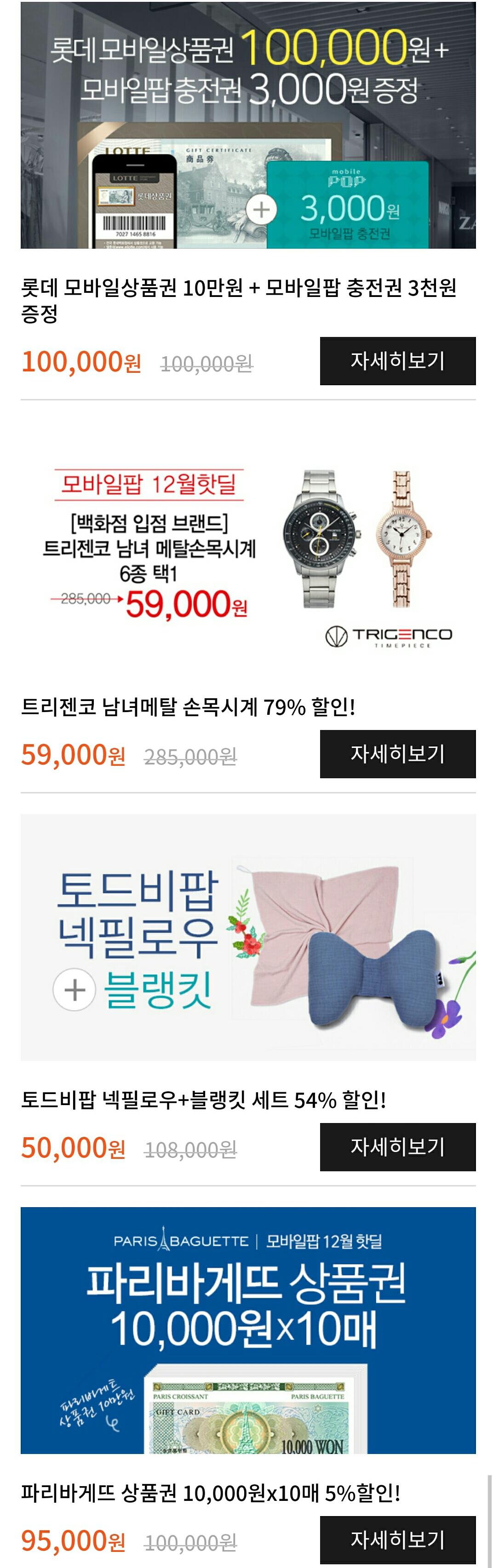 이번주 모바일팝 핫딜정보(롯데상품권, 파리바게트 상품권) > 사이렌정보