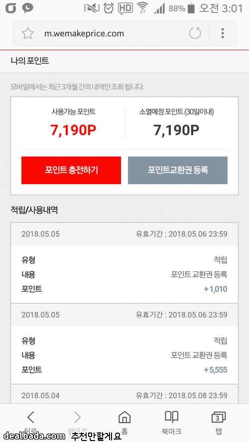 위멥에서 5555된 경우에 yes24 에서 받은 쿠폰이 1010 일경우에만 등록이 되나봐요. | ||