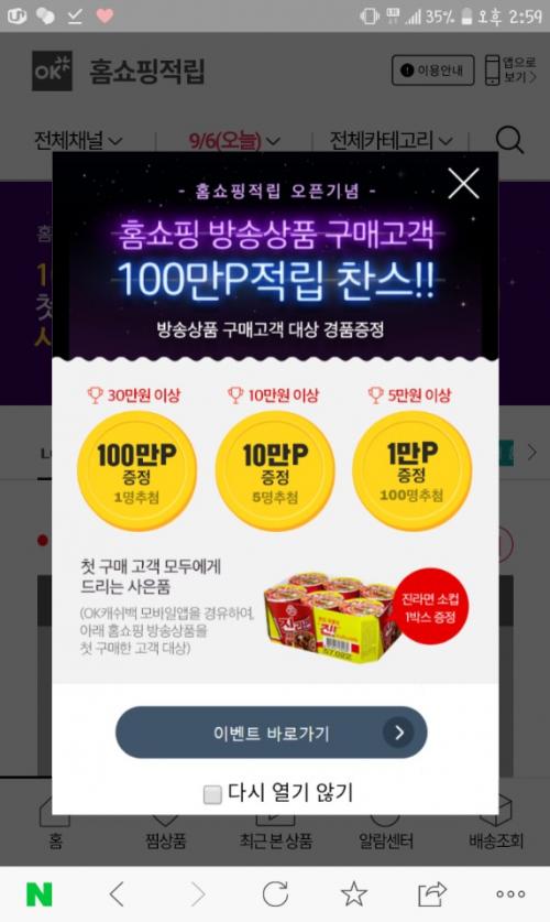 홈앤쇼핑에서도 OK캐쉬백 5% 적립이 가능해요~