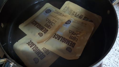함박스테이크는 전자렌지에 데우고 소스만 뜨거운물에......하아......별로겠거니....