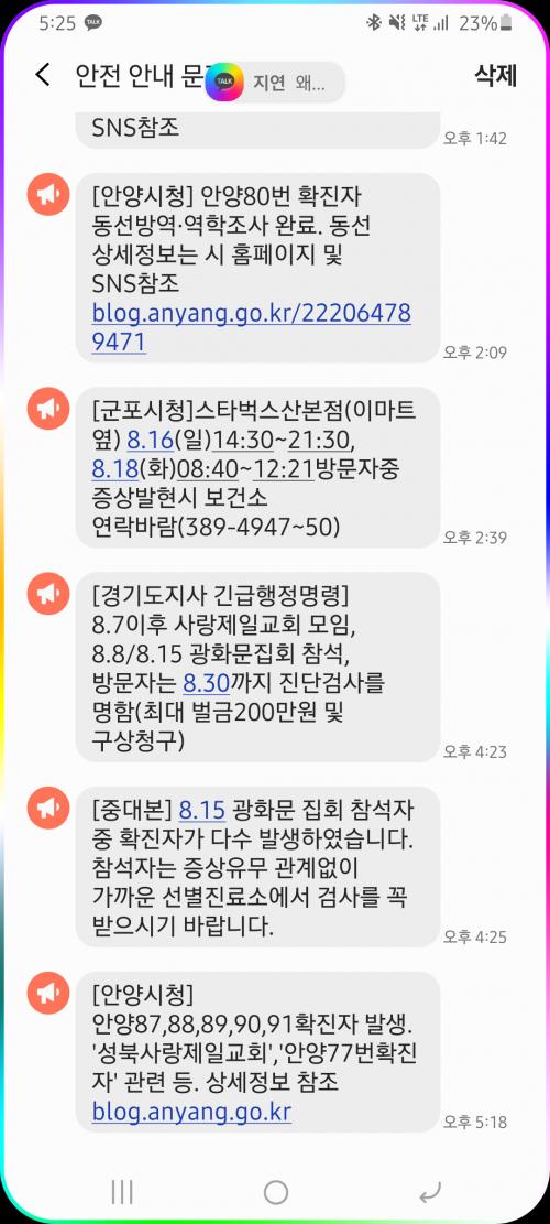 15일 이후로 재난문자가 계속 오네요.