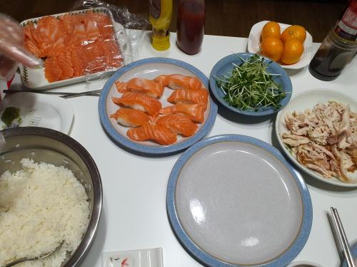 연어초밥 맛있겠어요..직접 만들어 드시니 더 맛있을거같네요..연어덩어리를 사다 하신건가요?