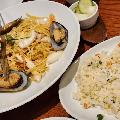 볶음밥만 추가 이고 나머지는 토마호크 주문하면 따라오는 세트(스파게티, 에이드2잔, 스프2개, 커피2잔) 입니다. | ||
