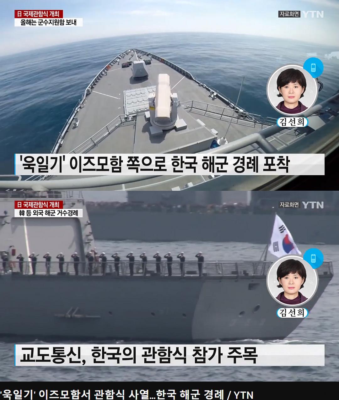 '욱일기' 이즈모함서 관함식 사열...한국 해군 경례 / YTN