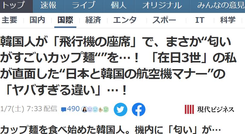 라면 냄새가 나니까 한국인은 매너가 엉망이다.