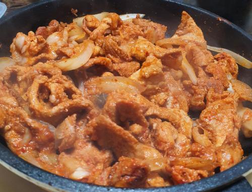 아침에 김밥해서 먹고 저녁은 제육볶음 해서 먹네요..