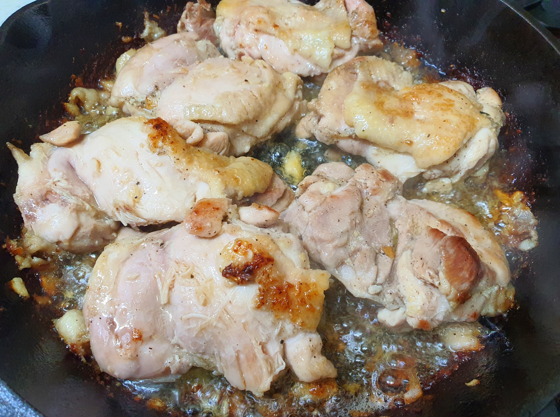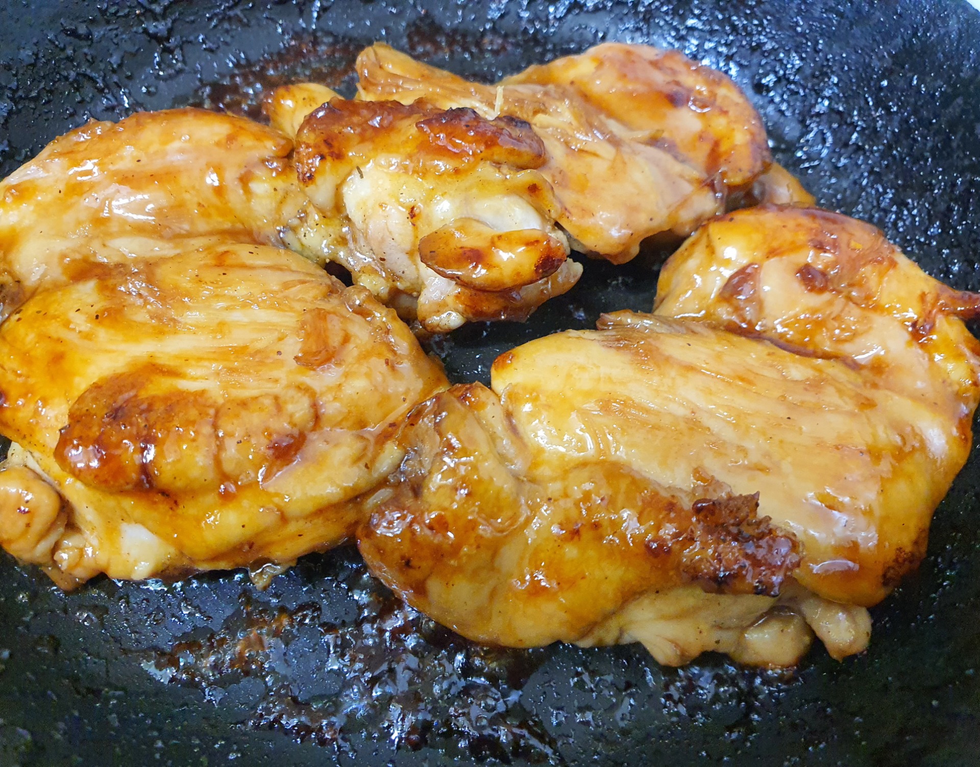 얼추 다 구워지면 몇덩어리는 다른 후라이팬에 데리야끼소스를 넣어 살짝 조려줍니다.