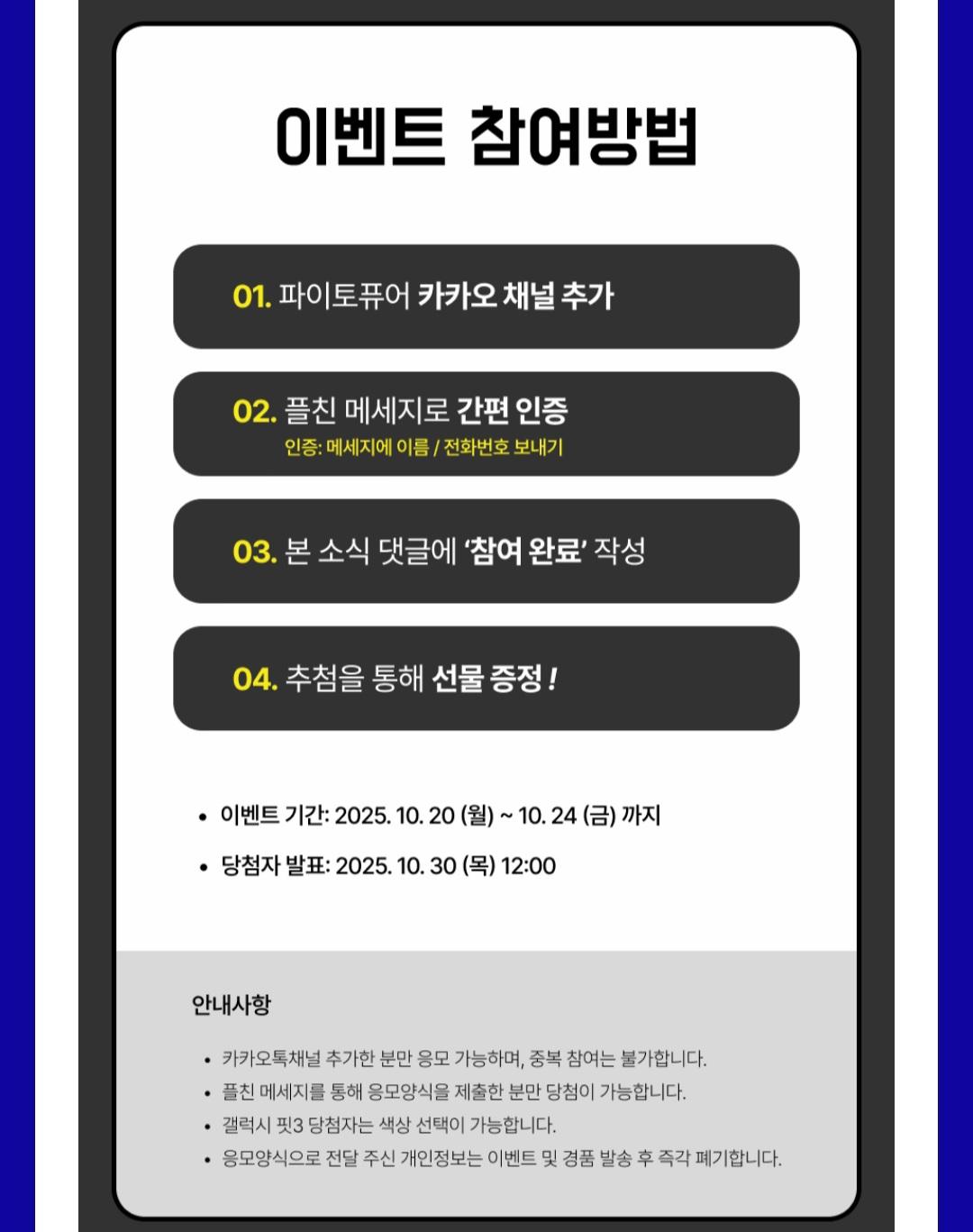 파이토퓨어에서 카카오 채널 친구 추가 이벤트를 진행하고 있어 안내드립니다.
