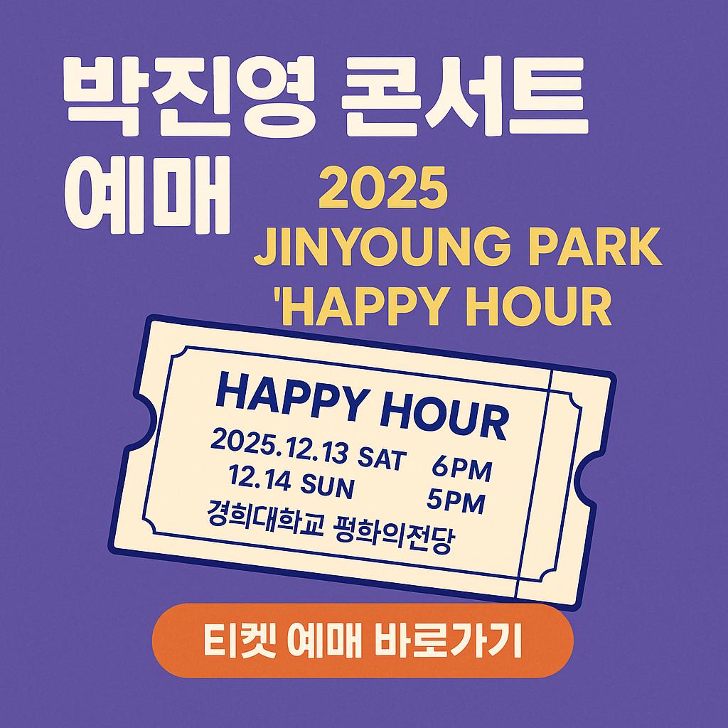 박진영 콘서트 ‘HAPPY HOUR’가 2025년 12월 13일(토) 오후 6시, 14일(일) 오후 5시 경희대 평화의전당에서 열립니다.
