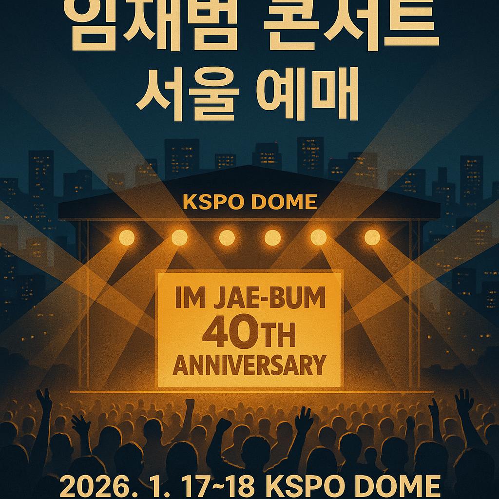 임재범 데뷔 40주년 콘서트 “나는 임재범이다” 서울 공연이 2026년 1월 17일(토) 오후 6시, 18일(일) 오후 5시 KSPO DOME(올림픽공원 체조경기장)에서 열립니다.