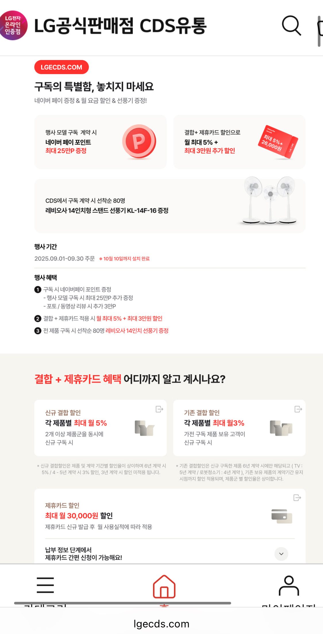 내용: 가전 교체 시기가 왔는데, 이번 달 이벤트가 좋아서 알아보는 중이에요.
