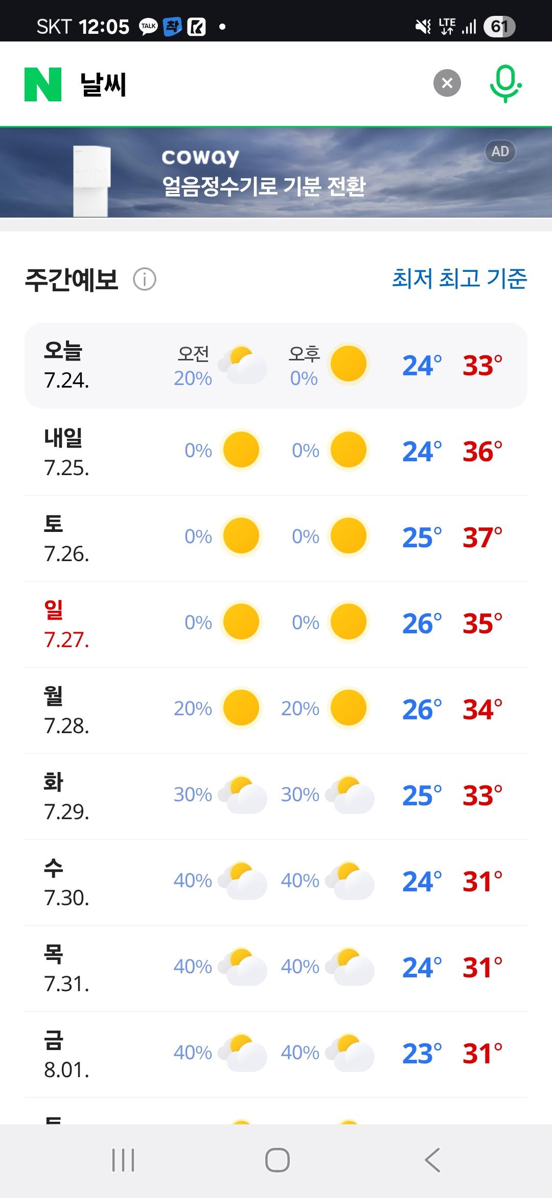 내일부터 기온 장난 아니네요ㅋㅋ