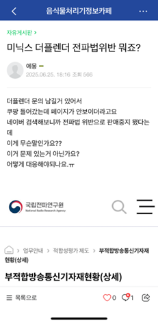 네이버에서 봤는데.,, 전파법 위반은 처음보네요