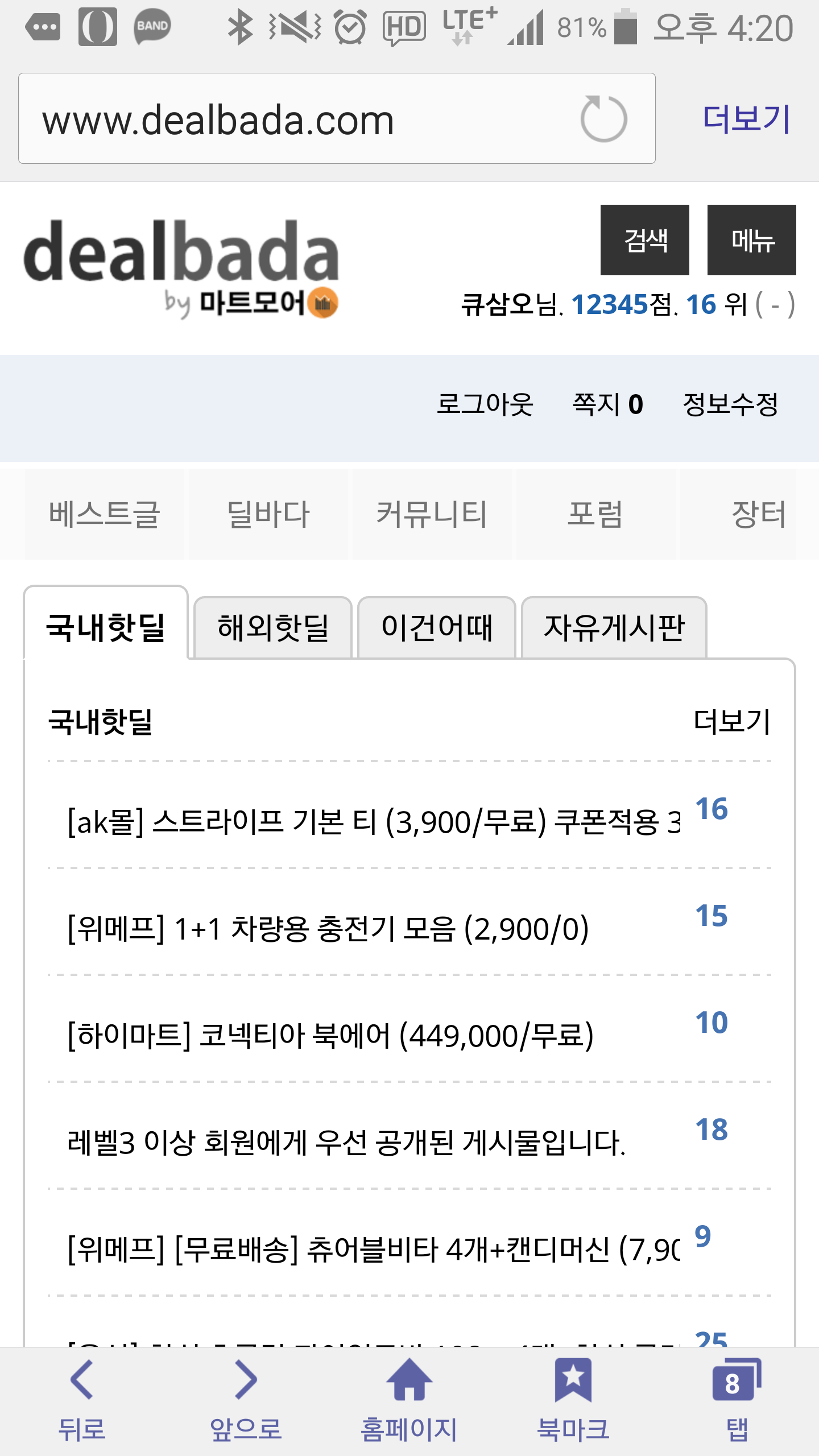딜바다 이벤트로 탄핵시 2배 포인트 건의 드리고 싶은 마음이 굴뚝같... |