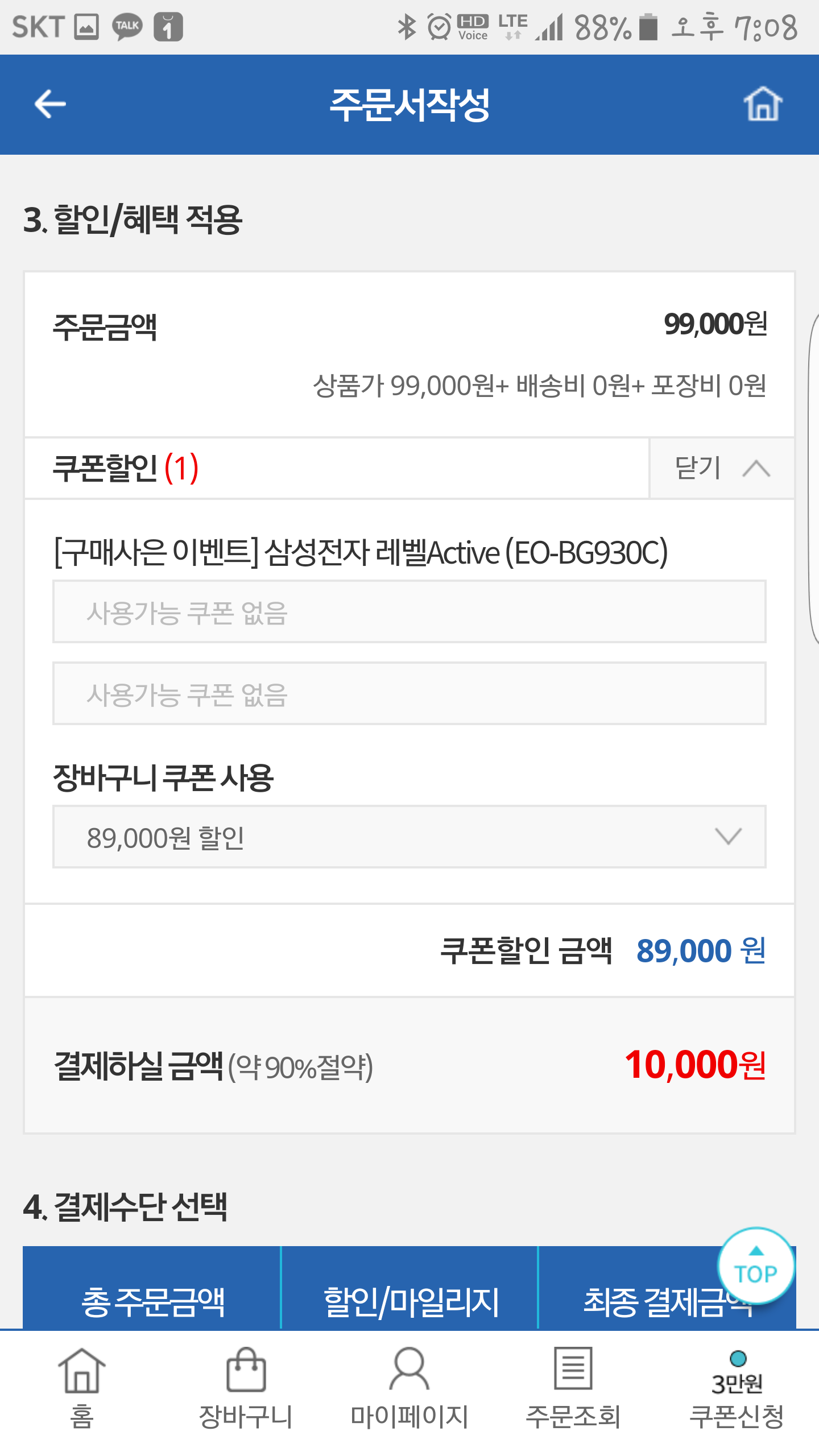 급속 무선충전기or 삼성전자레벨액티브 이어셋을 만원에 구매할수있는 쿠폰을주네요.