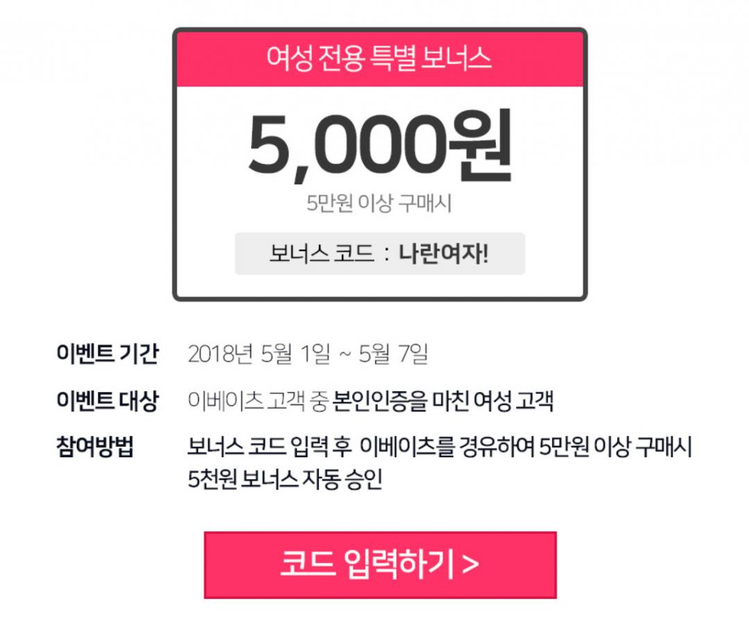 기간내에 5만원 이상 쇼핑하시면 5천원 캐쉬백됩니당