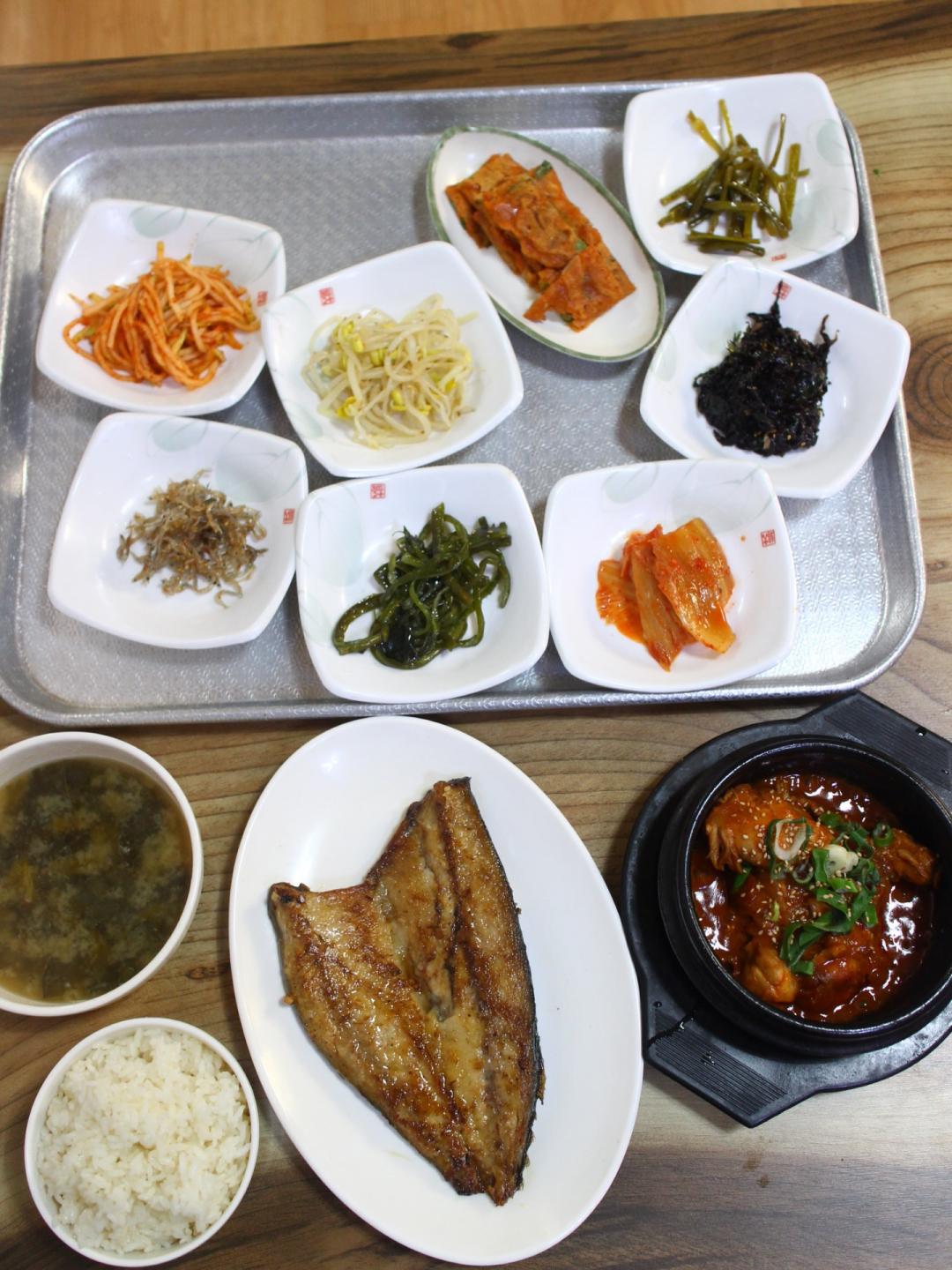 살이 통통한 고등어구이 한마리, 닭볶음뚝배기까지