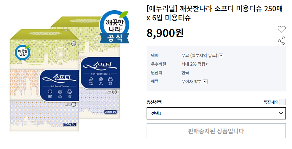 깨끗한 나라 갑티슈 6개 2,900원에 양도해요. > 자유게시판