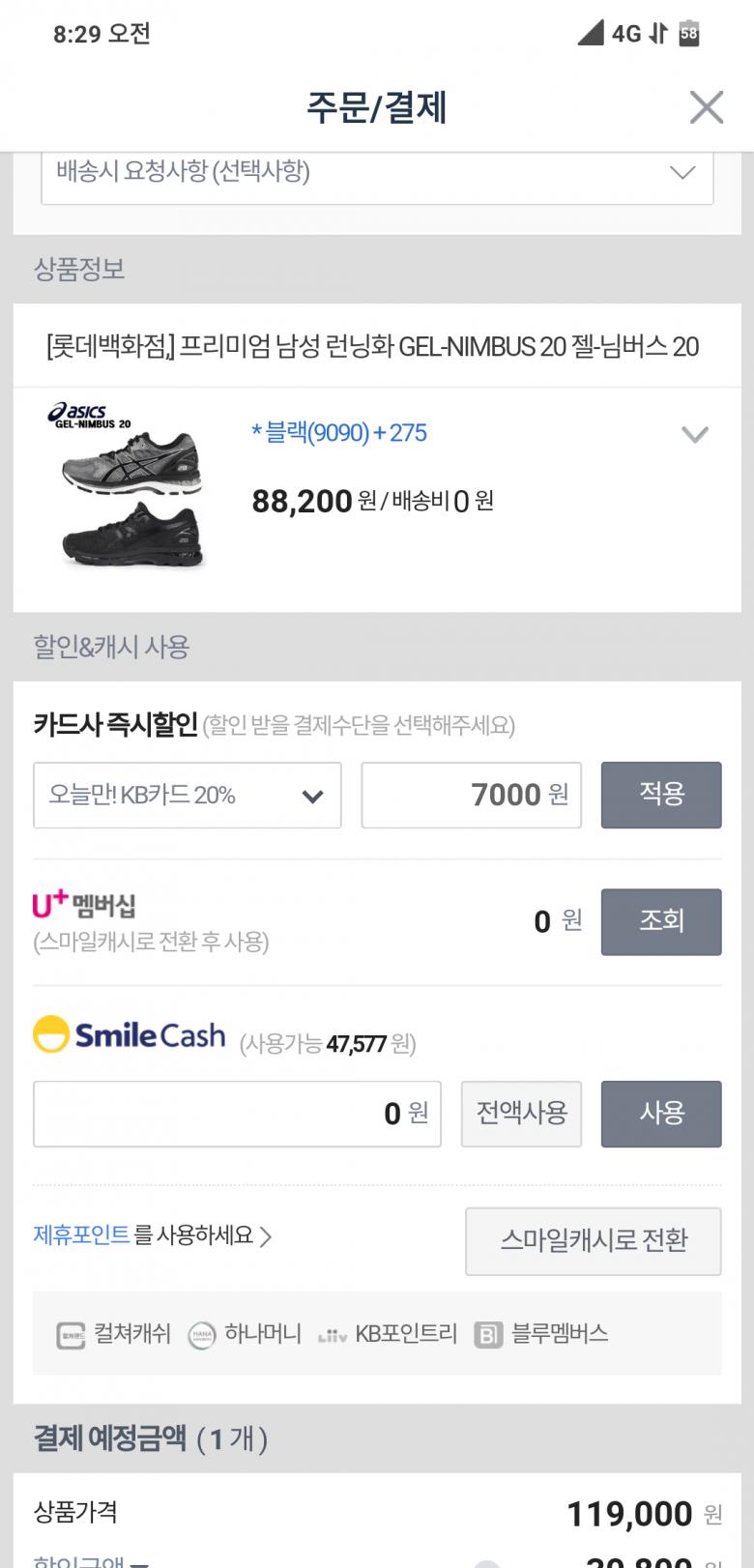 10만원짜리 신발에 적용해보니 쿠폰할인이 꼴랑 7천원이길래 즐거운 마음으로 신발 보다가 최대할인금액 보고 바로 닫았습니다 ㅠ