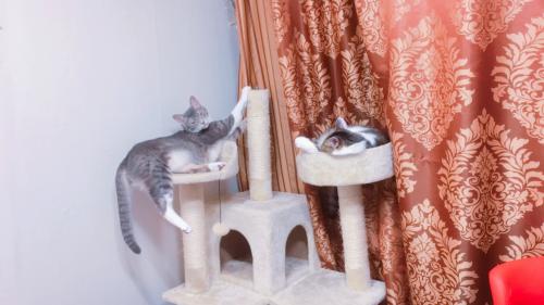그 이후부터 두 마리가 캣타워를 같이 씁니다