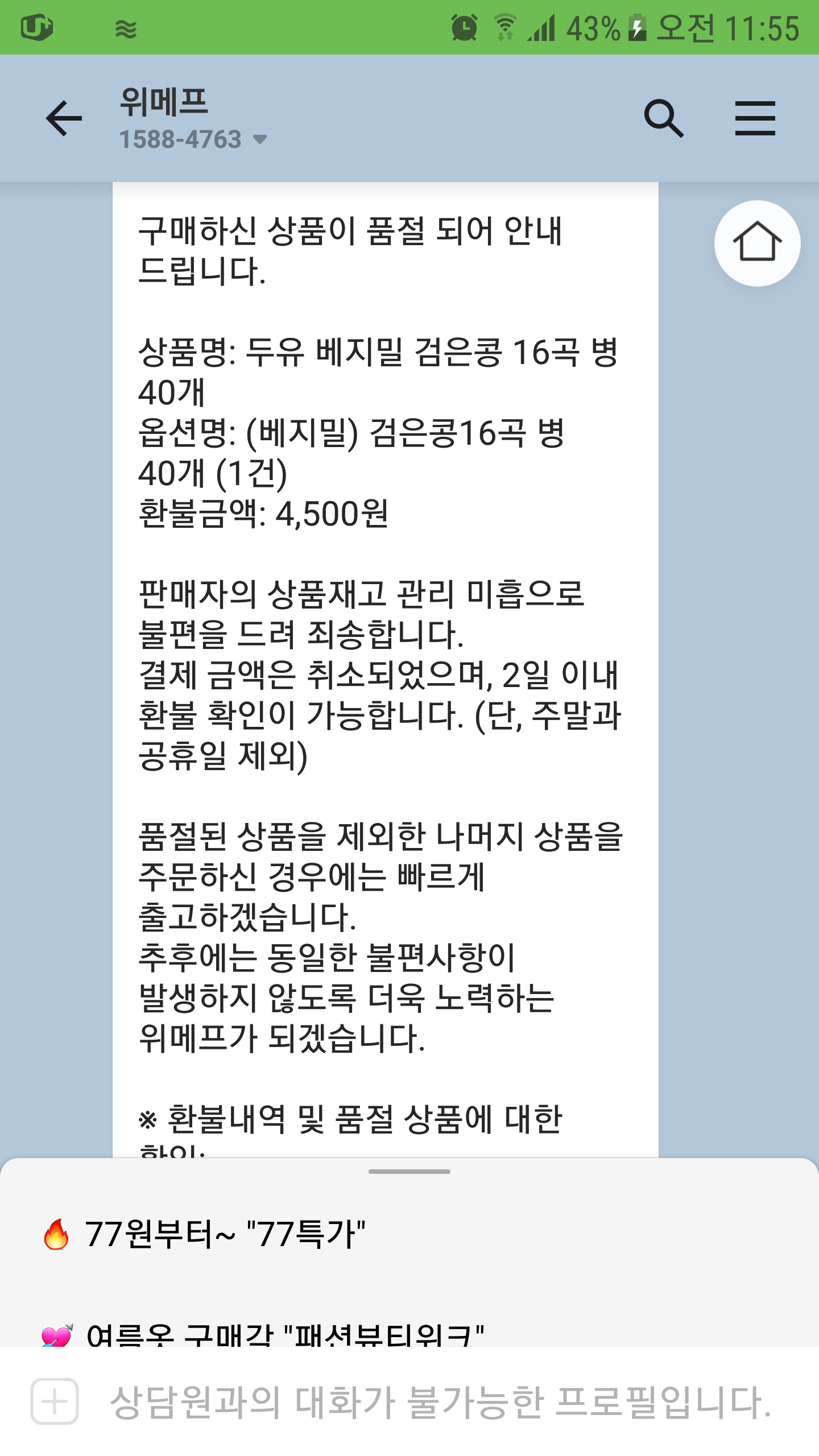 카톡 온거 보니까 품절 보상 포인트가 1~3일 이내에 들어온다고 하더라고요.
