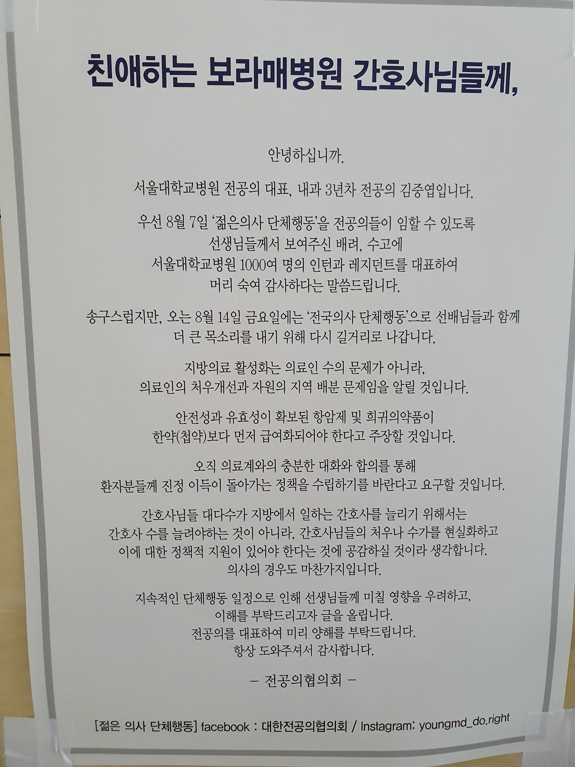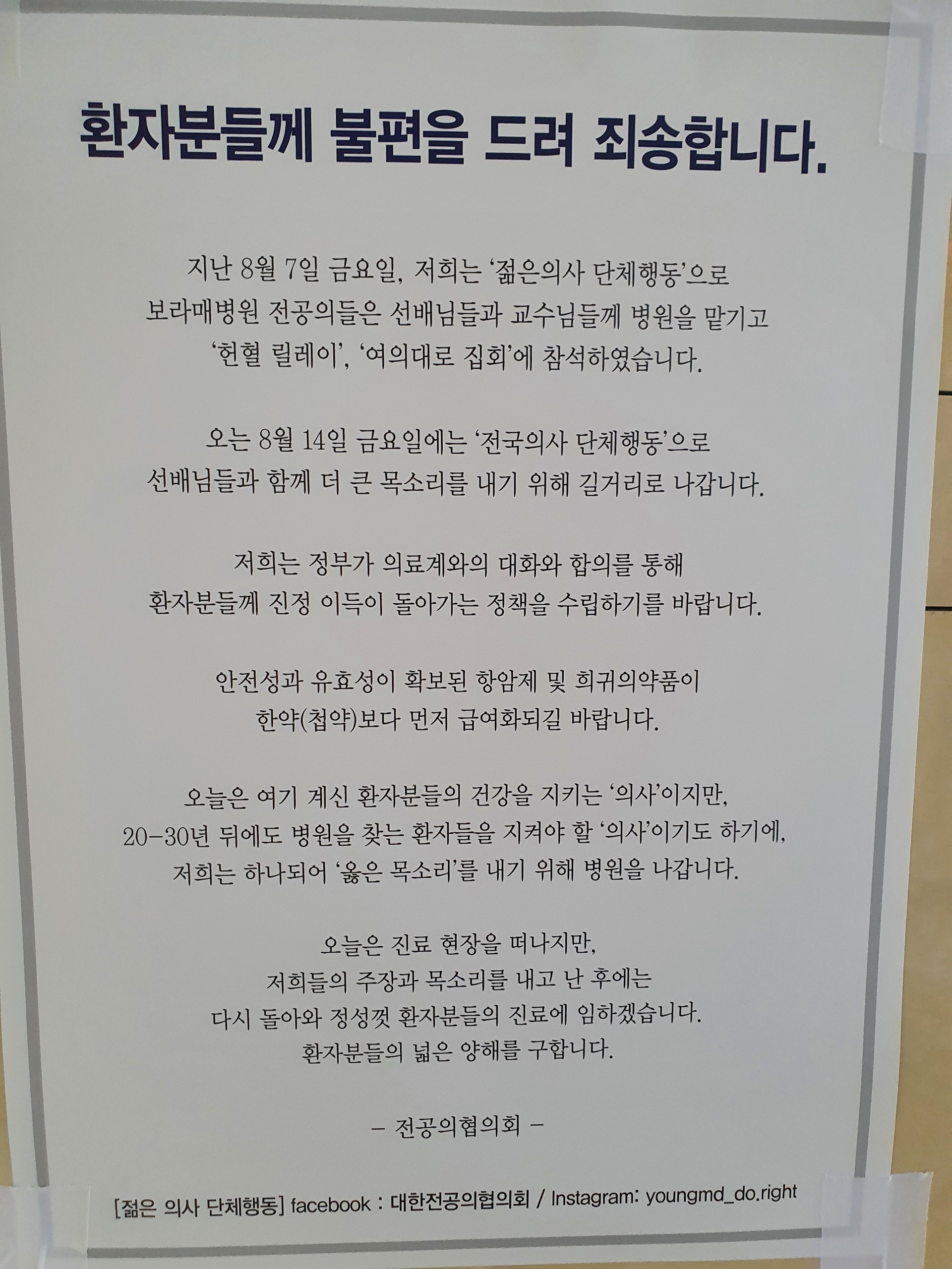 (ㅇㅈ) 전공의협의회 대자보네요..