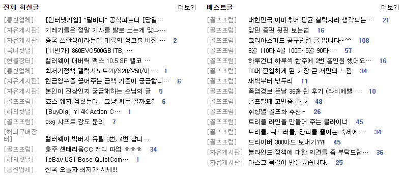 베스트글에서 2개 빼면 전부 골프포럼에서 올라왔네요..