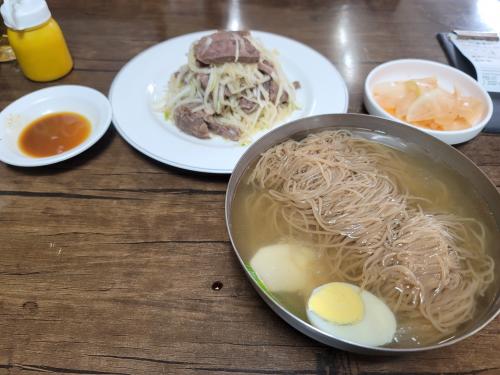 그래서 물냉곱배기랑 편육 소짜시키고(참고로 소고기를 편육이라고 하네요) 흡입중입니다~~
