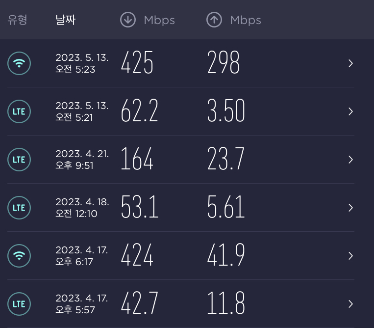 요새 LTE 속도들 다 구리니 그러려니 합니다