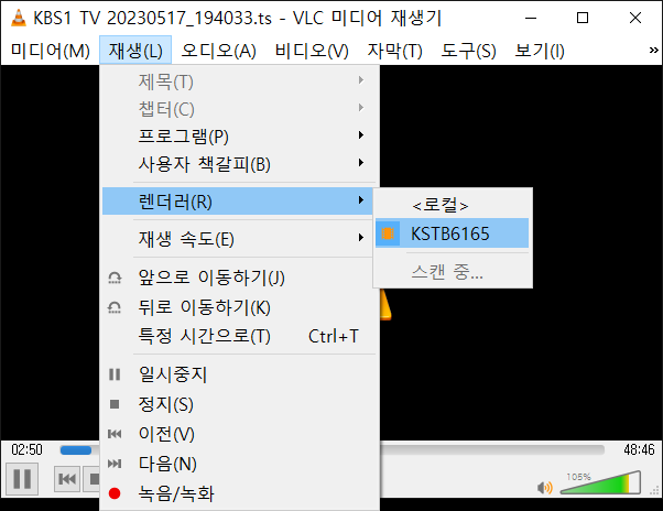 VLC는 아주 제대로 TV로 전송시켜 줍니다.